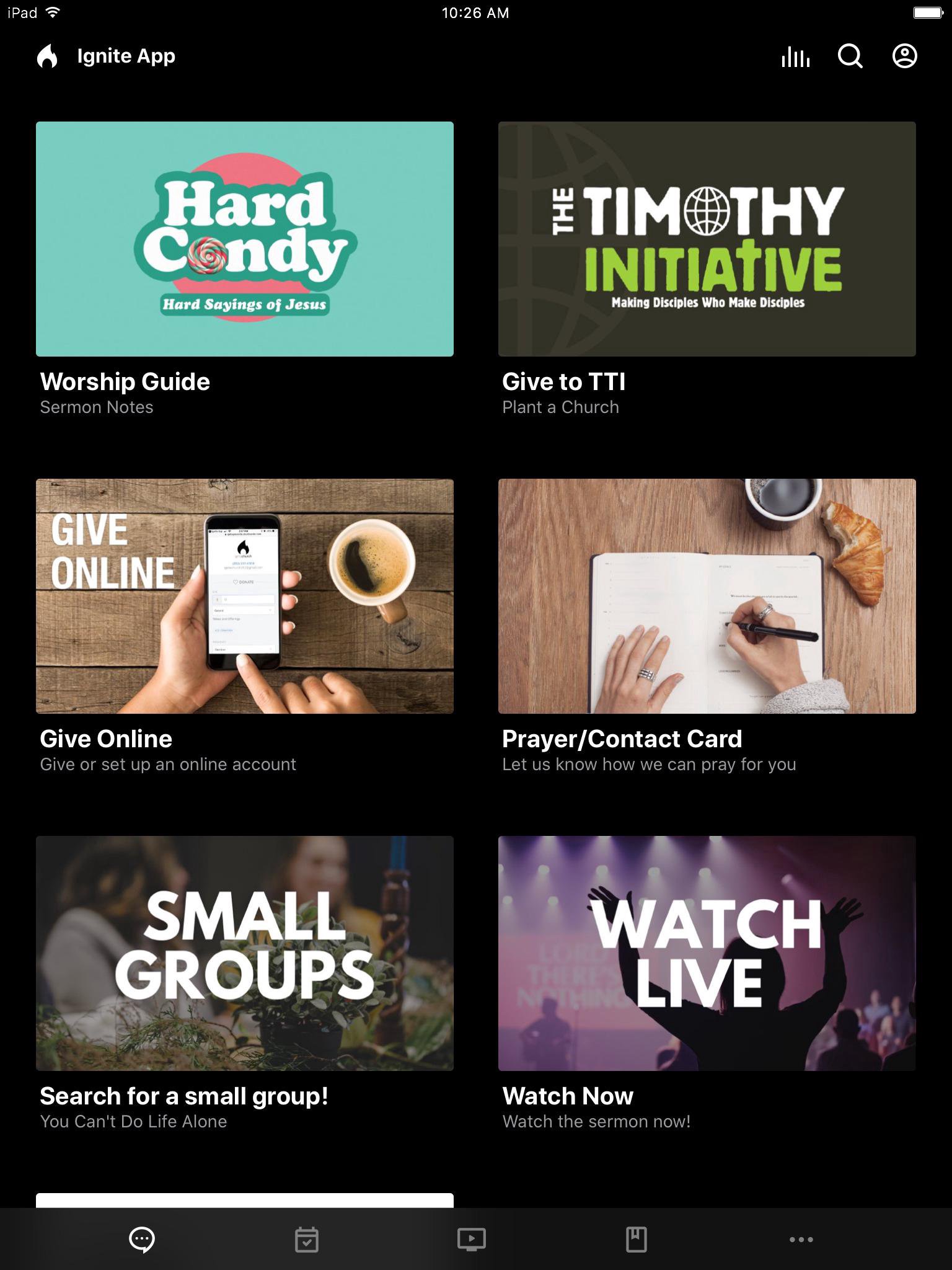 Welcome to the official Ignite Church App. Watch Sermons and Worship Sets, Go to Church Online, Give Online, and More! Share with your friends through Twitter, Facebook, or email. For more info about Ignite Church, please visit http://www.ignitechurch.com/ The Ignite Church App was developed with the Subsplash App Platform.