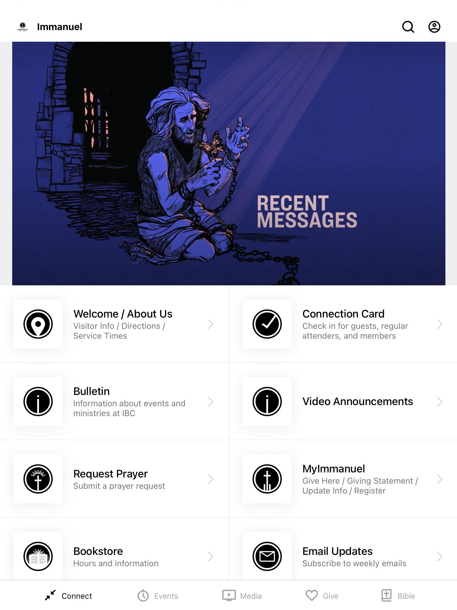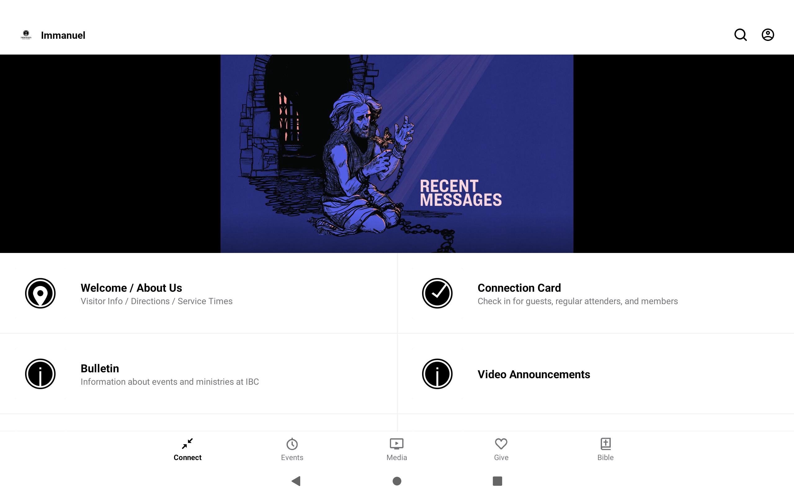 Immanuel Bible Church is located in Springfield, VA. Powerful verse by verse teaching of the Bible. A church focused of Seeking Christ constantly, serving Christ faithfully, and sharing Christ boldly. We hope this app will encourage you on your walk with Christ. You get quick access to: - Videos (Play all Immanuel videos, including messages) + the app remembers where you left off - Events (Filter and search through events quickly) - Audio (Listen and download audio messages) - Weekly Bulletin (Interactive and condensed) - Blog posts from some of our pastors - Give Page (secure and fast) - Connection Cards, Prayer, MyImmanuel, and much more For more information about Immanuel, please visit: http://ibc.church The Immanuel Bible Church App was created with the Subsplash App Platform.