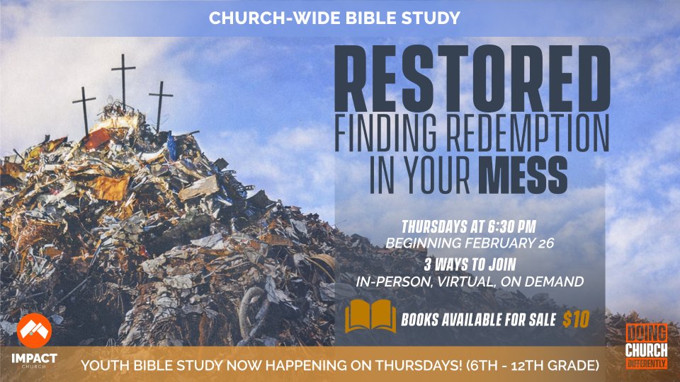 Finding Redemption in our Mess is a church wide study of the book, "Restored." This lenten study will show us how to: