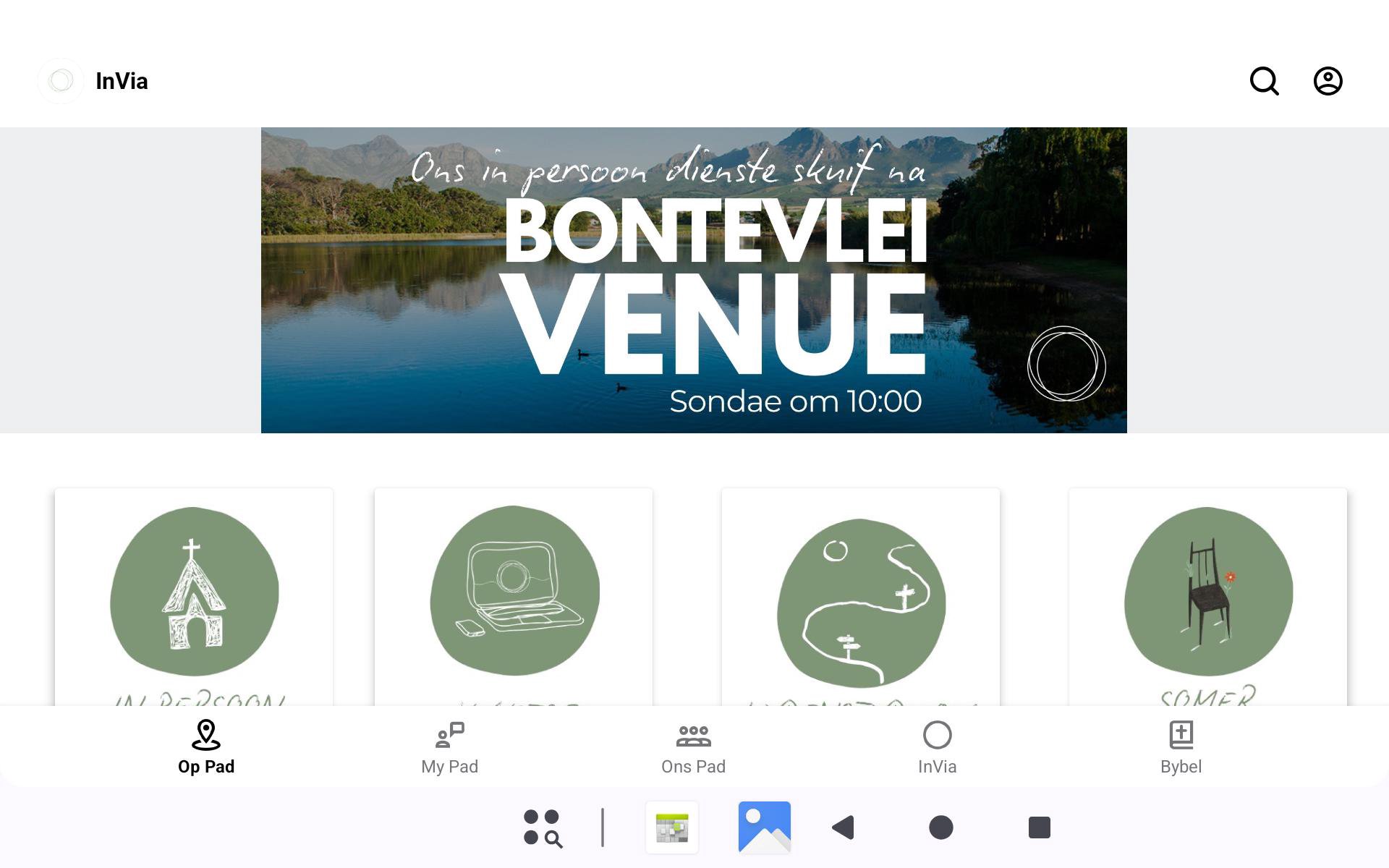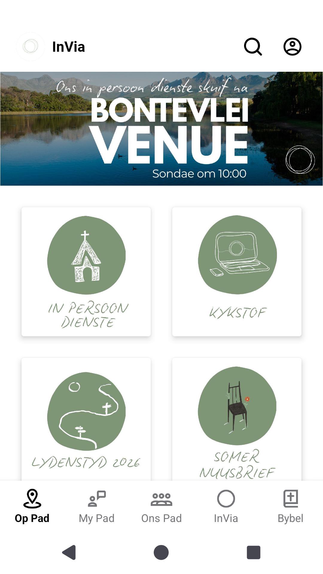Kom reis saam met ons op pad na heelheid met ander deur kontemplasie en aksie via die InVia-toepassing. Ontwerp vir ons Afrikaanse kontemplatiewe Christelike gemeenskap, én vir enigeen wat belangstel in betekenisvolle en diep persoonlike geestelike vorming. • Kry toegang tot begeleide meditasies, refleksies en praktyke om jou geestelike reis te verdiep • Bly op hoogte van gebeure, die kalender, en spesiale byeenkomste in ons gemeenskap • Ontdek maniere om betrokke te raak en 'n positiewe impak te maak deur aktiewe deelname • Ervaar gewyde oomblikke deur musiek, Bybellees en vorige boodskappe, enige tyd • Ontvang kennisgewings wat jou spirituele reis ondersteun • Skakel direk met gemeenskapspanne (Musiek, Kinderbediening, Bergskool, en meer) InVia is meer as net 'n toepassing—dit is 'n uitnodiging tot refleksie, aksie en transformasie. Sluit by ons aan op die weg. Hierdie toepassing is slegs in Afrikaans beskikbaar.