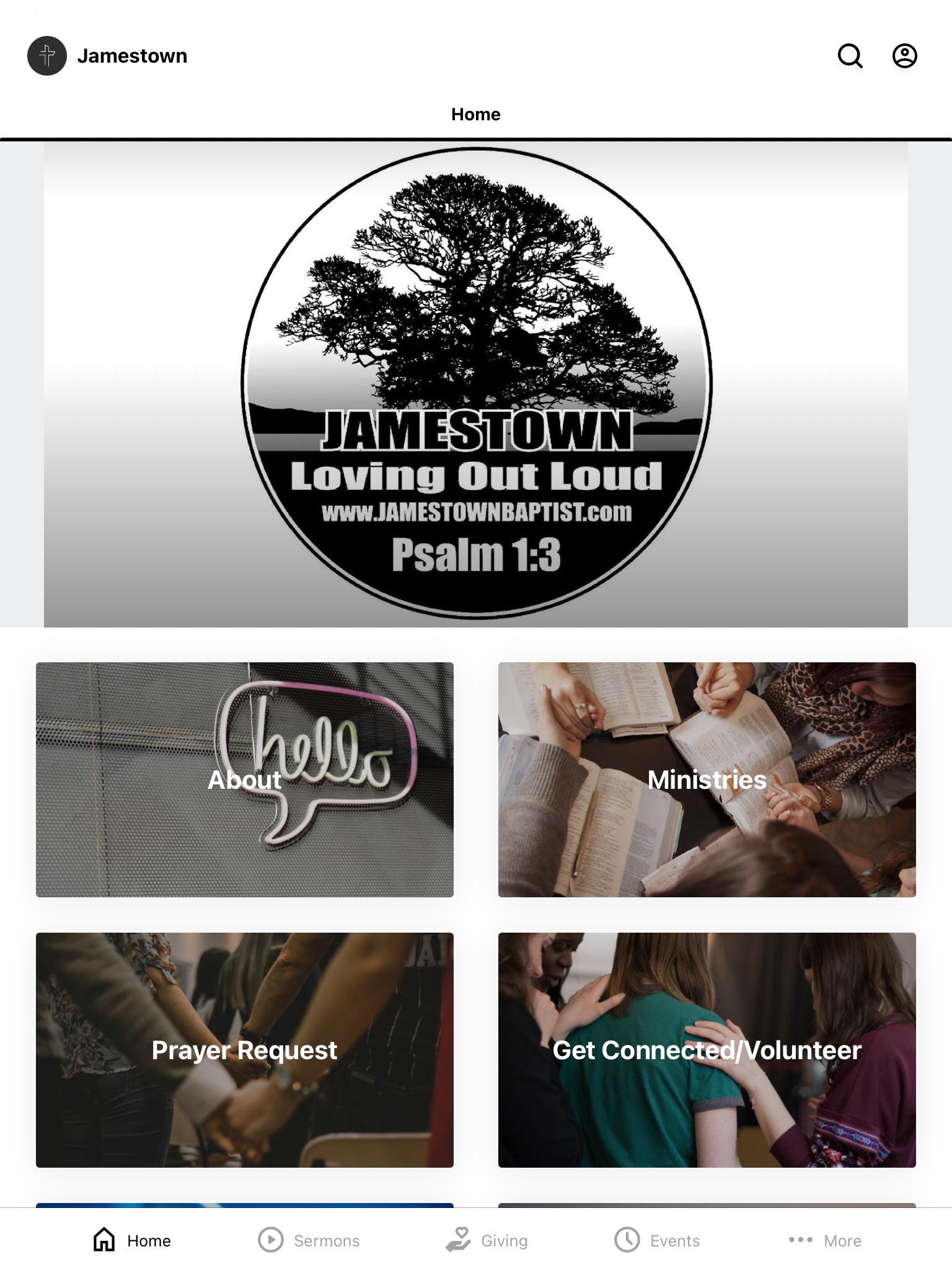 The Jamestown Baptist Church app will place everything we have to offer in the palm of your hand. This app will offer everything from sermons, podcasts, event calendars, bible, bible studies, small group sign up, and much more. Take us everywhere you go and never miss out on everything we have going on here. Our vision is to fulfill the great commission of spreading the gospel and making disciples, To walk together as we follow Jesus and minister to our community. This app will help us fulfill this vision by reaching beyond just the four walls of the church building.