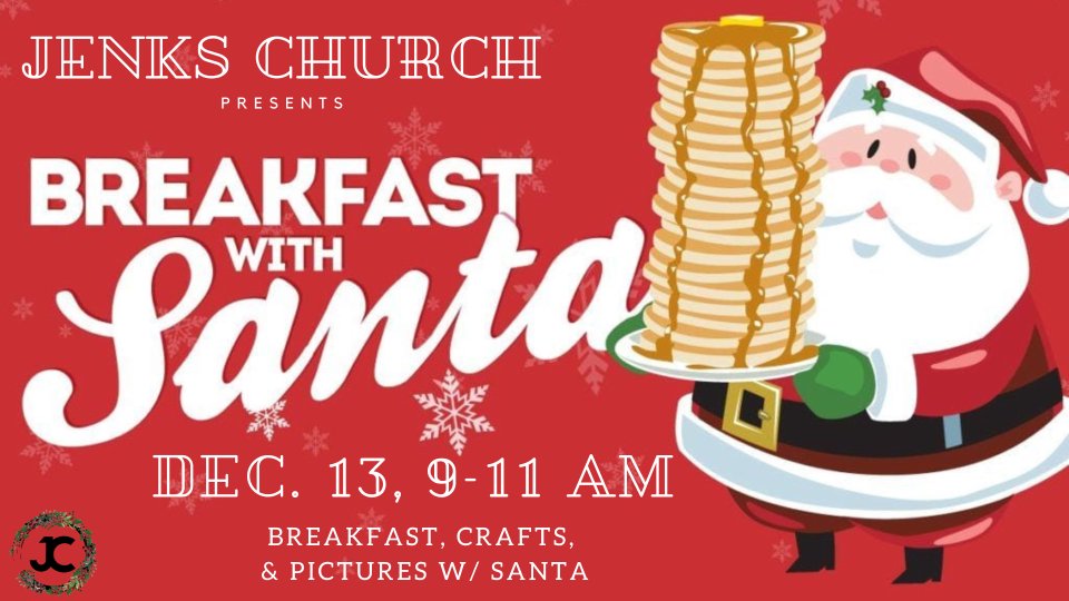 December 14th is going to be so FUN! Jenks Church will be hosting Santa for breakfast! The morning will include breakfast, crafts, and pictures with Santa taken by the amazing Holly Peevyhouse! π₯ππΈπ **You MUST RSVP by December 8th**