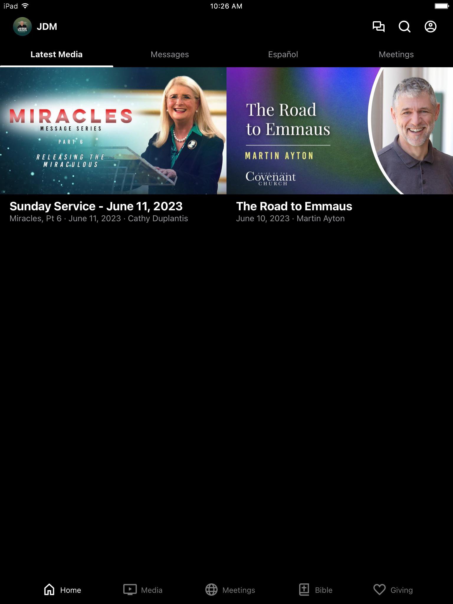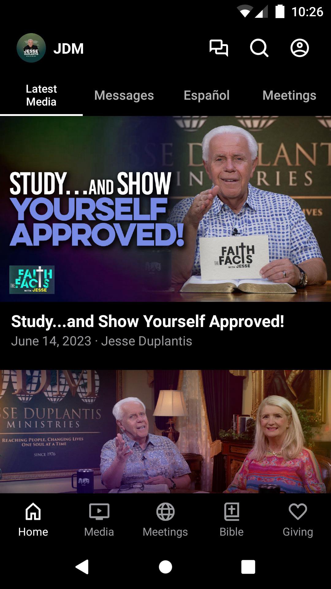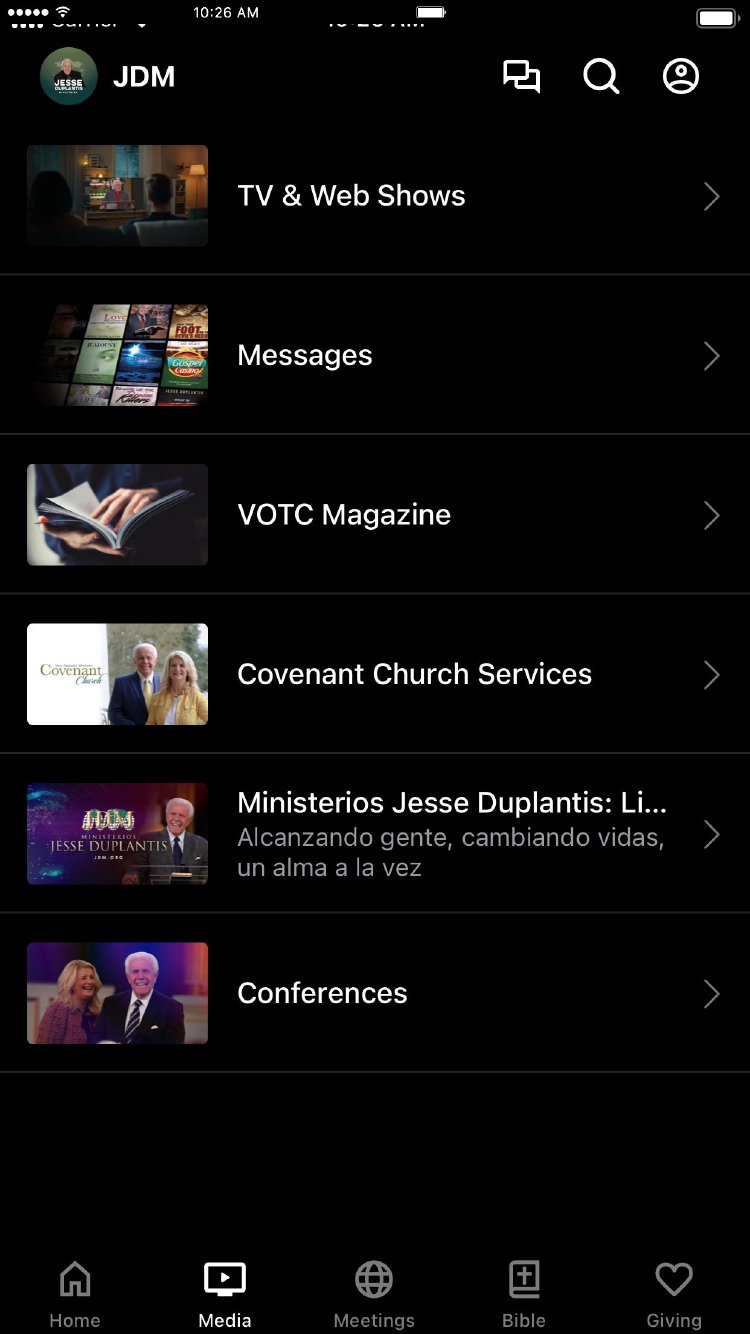 Welcome to the official Jesse Duplantis Ministries app. Download our free app to have access to our weekly TV show, our exclusive web-only shows, live services and more! You also have access to Jesse and Cathy's meeting schedules and our Voice of the Covenant Magazine in both English and Spanish. And now as a part of our JDM Spanish Outreach, we have a special section for our Spanish speaking audience. For more information about Jesse Duplantis Ministries, please visit: http://www.jdm.org/ The Jesse Duplantis Ministries App was created with The Church App by Subsplash.