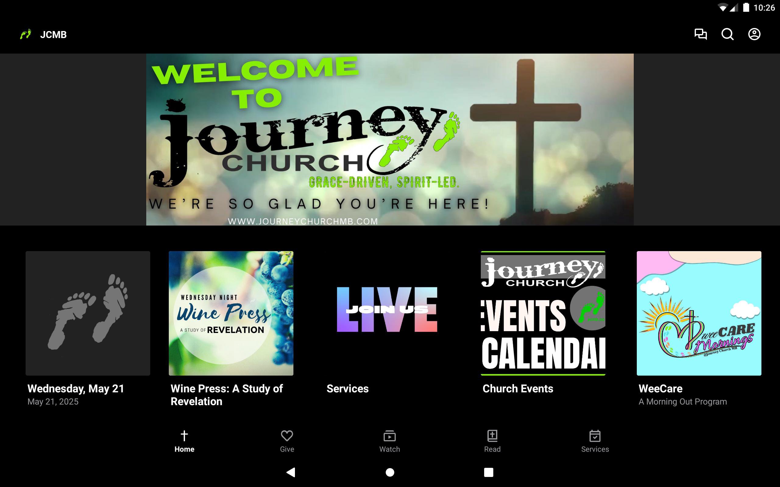 Doing life with Journey Church has never been easier! Now you can: *Watch/Listen to Sermons *See Upcoming Events *Check Opportunities to Serve *Give Your Offering All from the comfort of your mobile device. Make sure to "Allow Notifications" to stay updated on all the important things going on in and around the church!