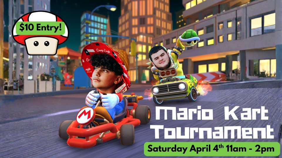 Come one, come all to the event of a lifetime. Join us Saturday April 4th as we put on our first ever Mario Kart Tournament!!!