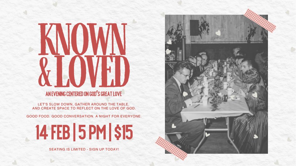 Join us for a meaningful evening centered on the steady, faithful love of God — a love that fully knows us and deeply cares for us. Scripture reminds us that we are seen, known, and loved by Him, and this night is an invitation to pause and reflect on that truth together.