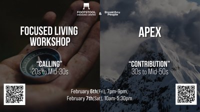 Footstool Mission Center hosts the Focused Living and APEX Workshops partnering with Breakthru People, designed to help you clarify your calling, purpose, and direction in this season of life.