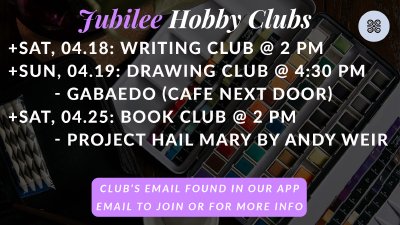 ■ If you’re interested, please sign up on our Jubilee app by this upcoming Thursday to reserve your spot.