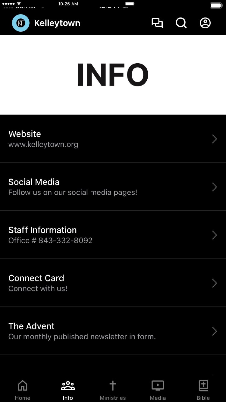 This app will help you stay connected with the day-to-day life of our church. With this app you can: watch or listen to past services; stay up to date with push notifications; share your favorite messages via Twitter, Facebook, or email; and download messages for offline listening.