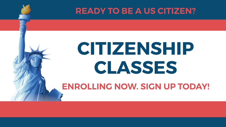 Are you interested in US Citizenship? This 12-week class will help you for that important step! A workbook, practice exam, civic flashcards and a mock interview are included.