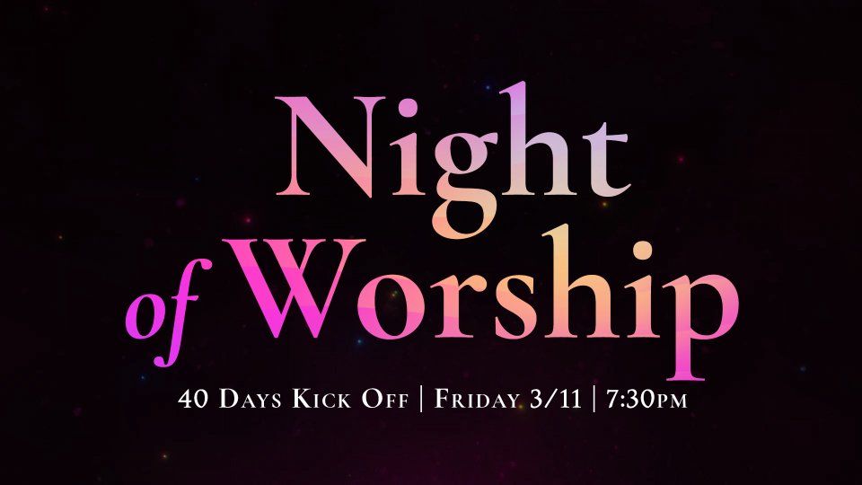 Kicking off 40 Days with a night of worship - just good, old-fashioned prayer and worship. We believe God is showing up during these 40 days - let's expect nothing less! Friday, March 11 | 7:30PM