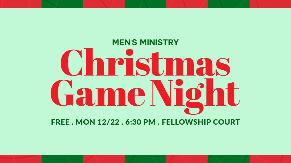 2nd Annual Game Night & Dinner (older sons 14+ years are welcome). It’s FREE and it all starts at 6:30.