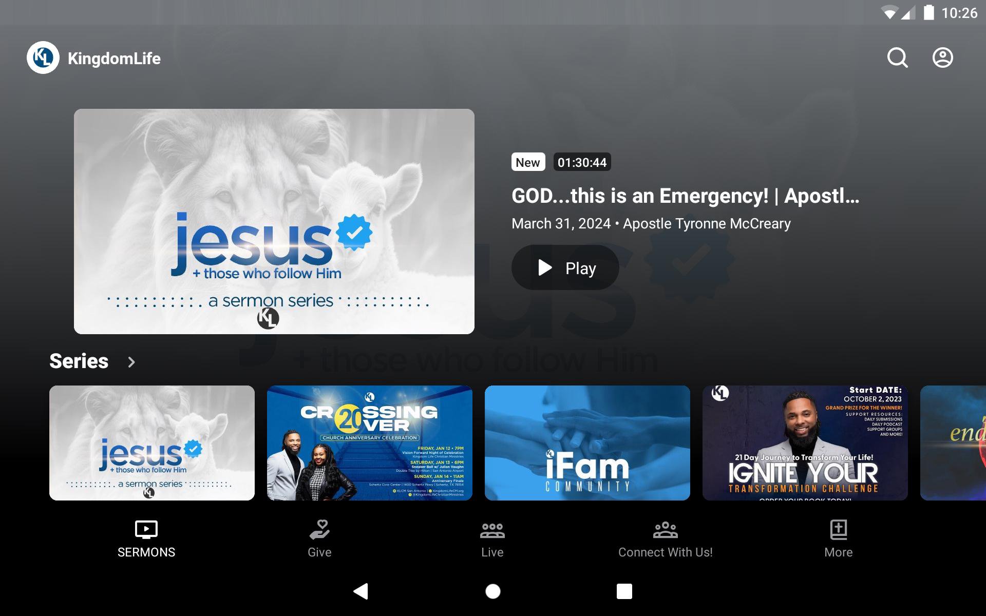 Welcome to the Official Kingdom Life Christian Ministries app. With the KLCM app you can listen to sermons on the go from Apostle Tyronne McCreary and the KLCM ministry team as well as share them via Twitter, Facebook and email. Keep up to date with the latest blog post from Kingdom Life and stay connected to the ministry throughout the week. For more information about Kingdom Life Christian Ministries, please visit: www.kingdomlifecm.org. The Kingdom Life Christian Ministries app was created with The Church App by Subsplash.