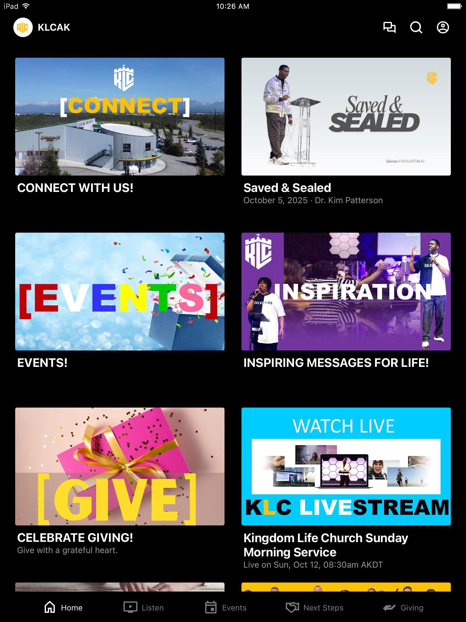Your Kingdom Life Begins Here! This app will help you stay connected with the day-to-day life of Kingdom Life Church. With this app you can: watch or listen to past messages; stay up to date with push notifications; share your favorite messages via Twitter, Facebook, or email; and download messages for offline listening.
