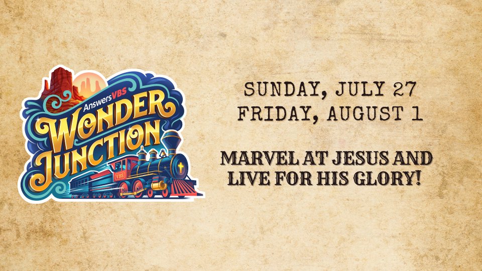 Join us for Wonder Junction Vacation Bible School. As we Marvel at Jesus and live for his glory! This will be a great VBS! We will have music, games, crafts, and bible lessons! You won't want to miss this exciting Vacation Bible School for your whole family. Each day will have something new as we marvel at Jesus and live for his glory!