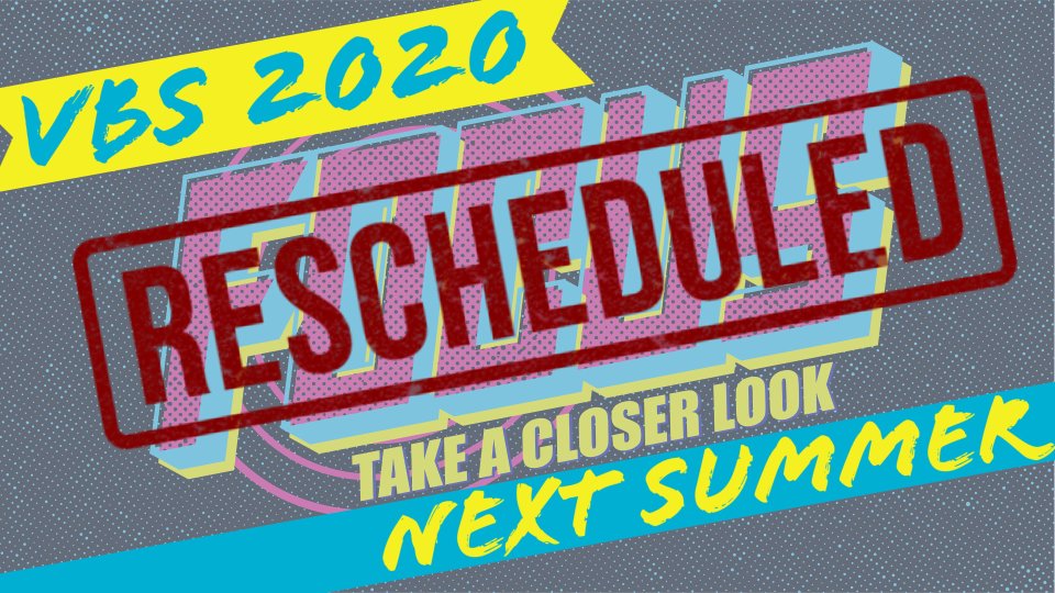 Due to the timing of this event we are going to have to reschedule until next summer. We apologize for any inconvenience this may cause, but we want to do things with excellence and we believe that means pushing it back to next year. Please make plans to come to VBS next summer!