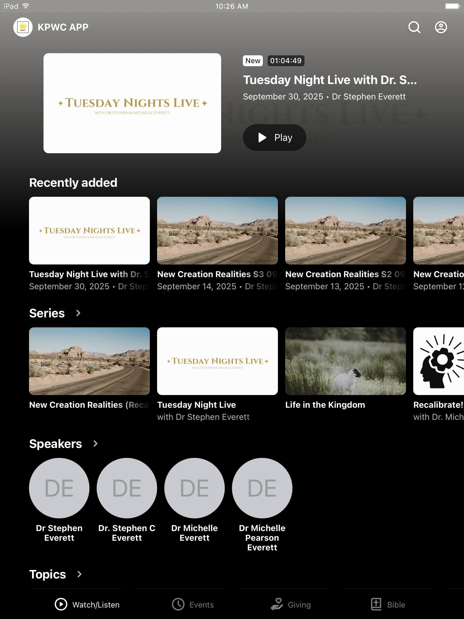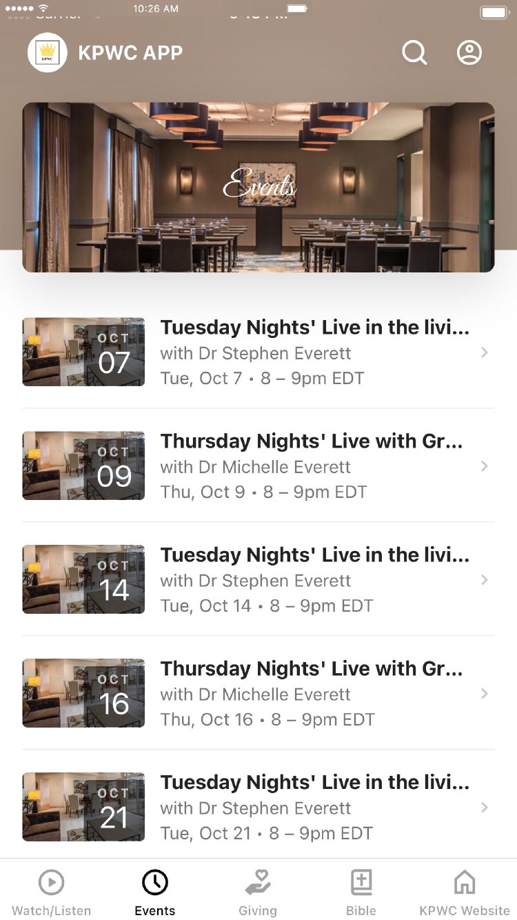 Powerful resources to help cultivate the culture of God's Kingdom in your life! With the new KPWC APP you can easily stay connected with life-enriching resources: - Watch or listen to past messages - Stay up to date with our coming Events - Share your favorite messages via Twitter, Facebook, or email - Download messages for offline listening
