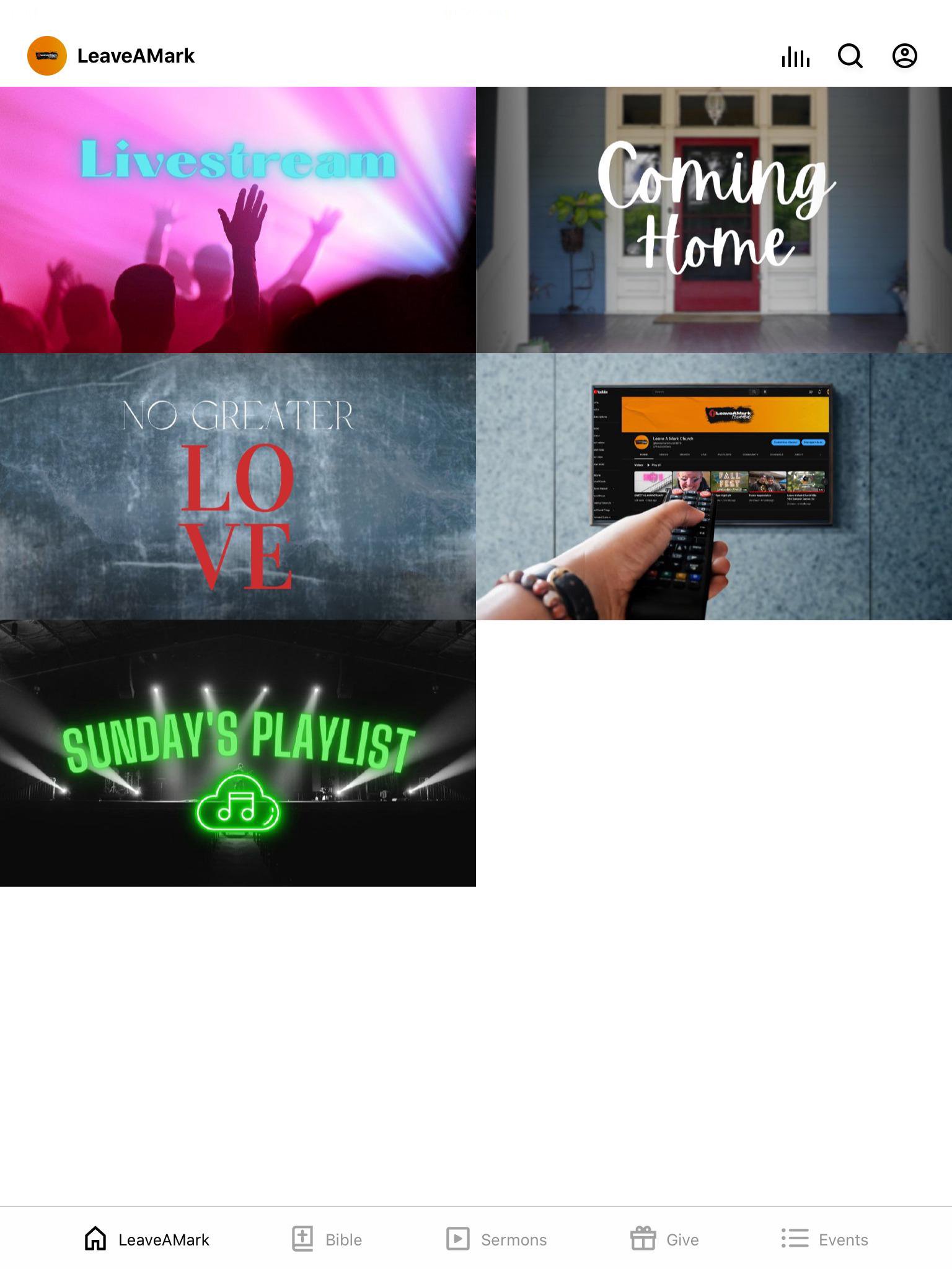 Now you can download the official app for LeaveAMark Church! The LeaveAMark app gives you access to LeaveAMark sermons from Pastor Steve Combs and other speakers, as well as service times. You can keep up to date on the latest events and receive special notifications directly to your phone. For more information about our church please visit us on the web at www.leaveamark.org! The LeaveAMark Church App was created with the Subsplash App Platform.