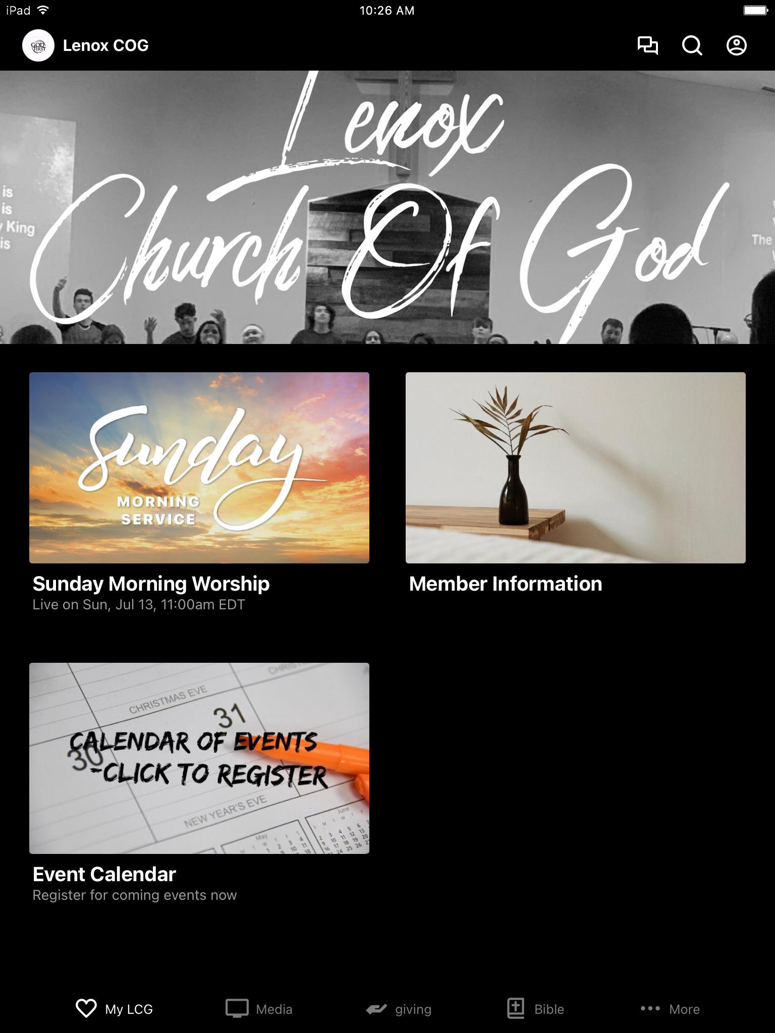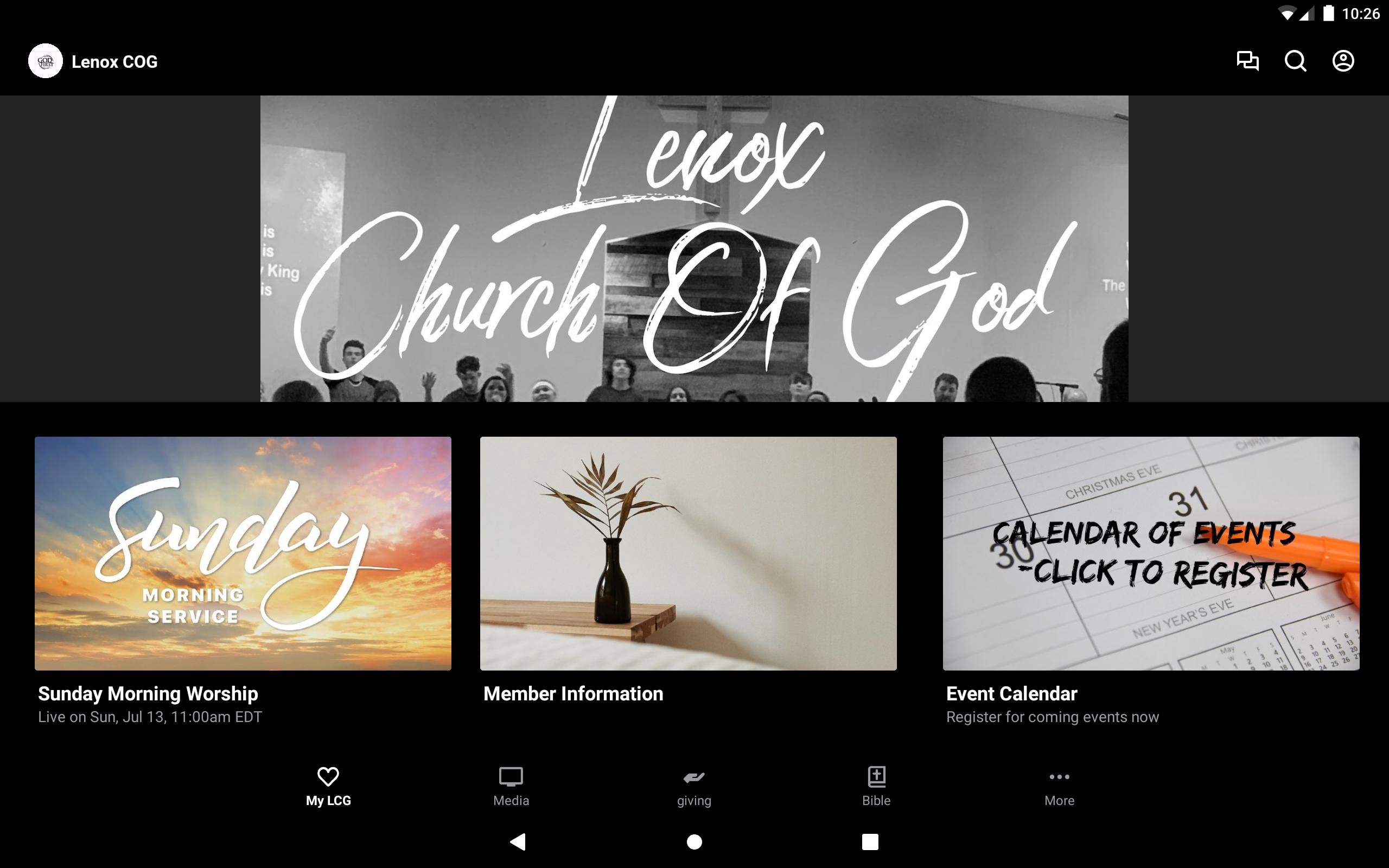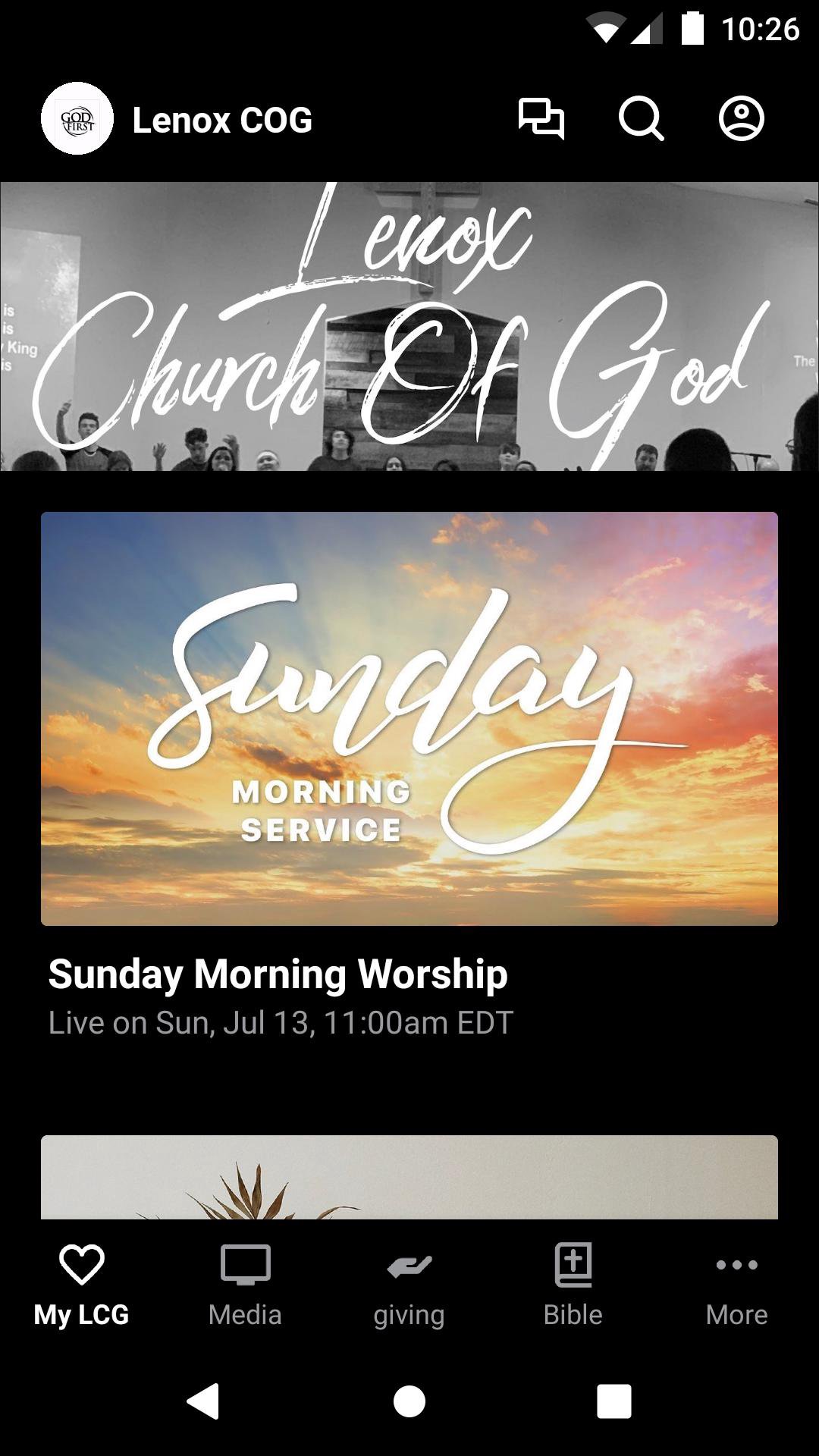 Lenox Church of God has a new mobile app! - Sermons - Giving - Interactive Bible - Daily Devotionals - Church Messaging and more... Download today!