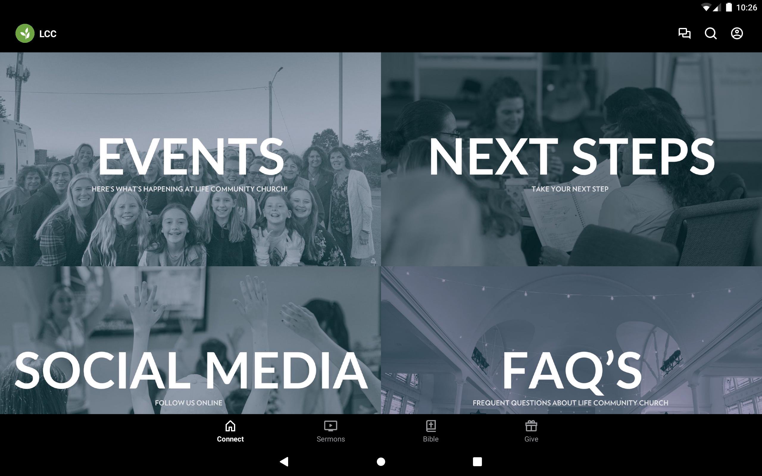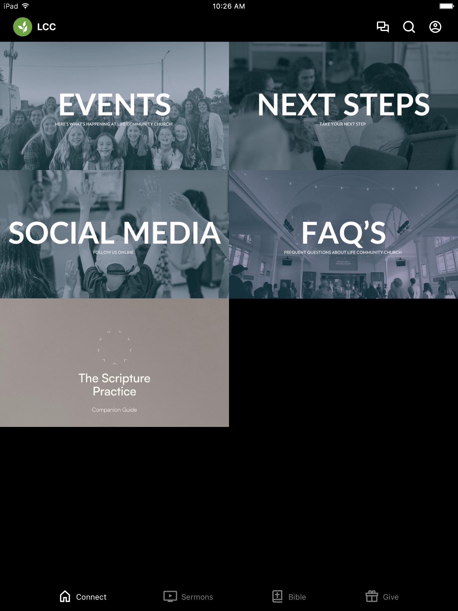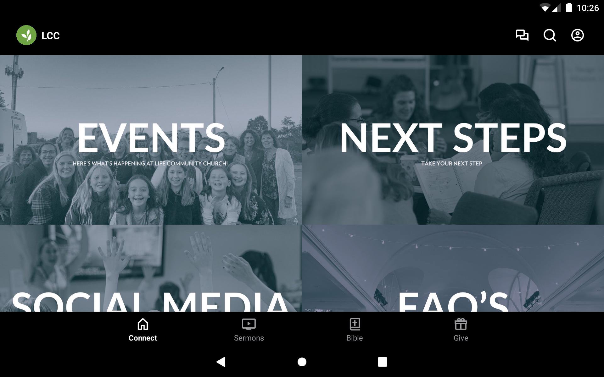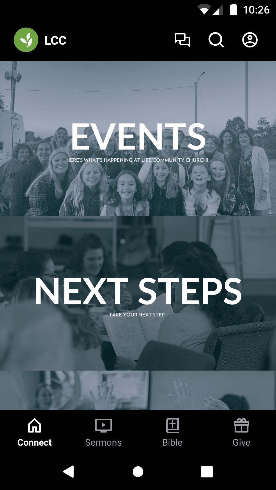 Stay connected to what's happening with the LCC app. You can access sermons, upcoming events, Bible reading, Community Group messaging, and more through our app.