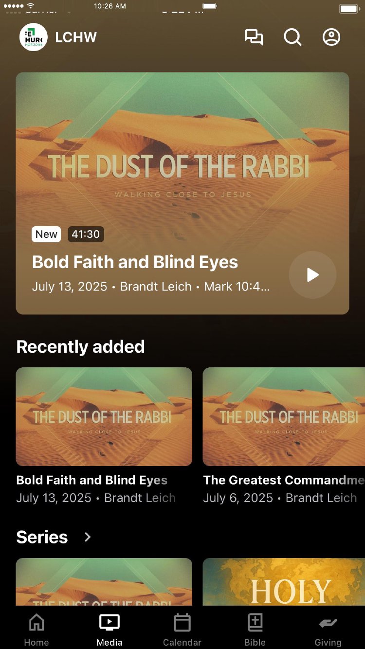 This app will help you stay connected with Life Church Horizon West. With this app, you can: watch or listen to past messages; stay up to date with push notifications; share your favorite messages via social media or email; and download messages for offline listening.