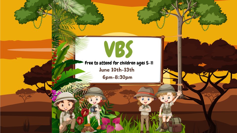 All children ages 6-11 are invited to join us for a week of Vacation Bible School happening June 10th-13th (Monday-Thursday) from 6-8:30pm. It is FREE to attend but registration is required. Snacks, games, sports, worship and growing closer to Jesus- the best way to spend a summer!!