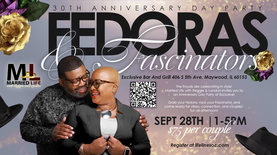 Married Life with Reggie & London invites you to an Anniversary Day Party at Exclusive! $75 per couple. Get your ticket today!
