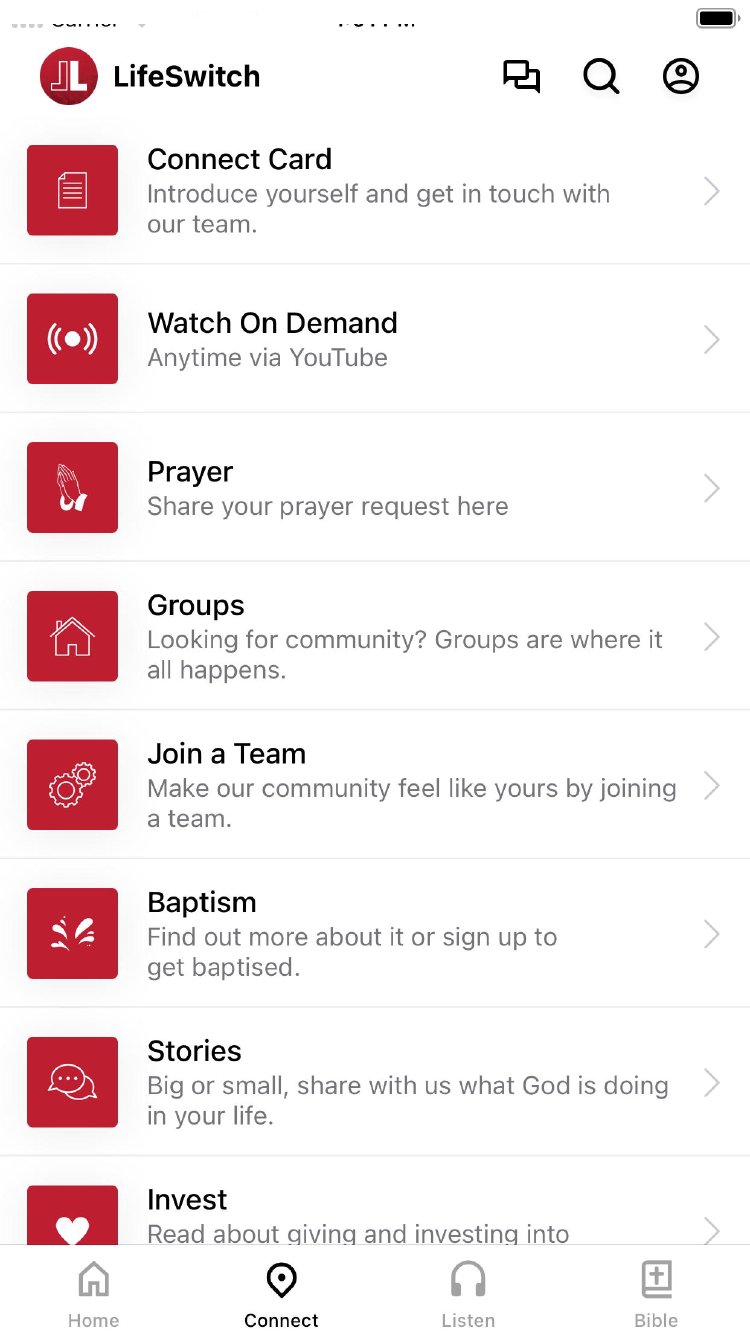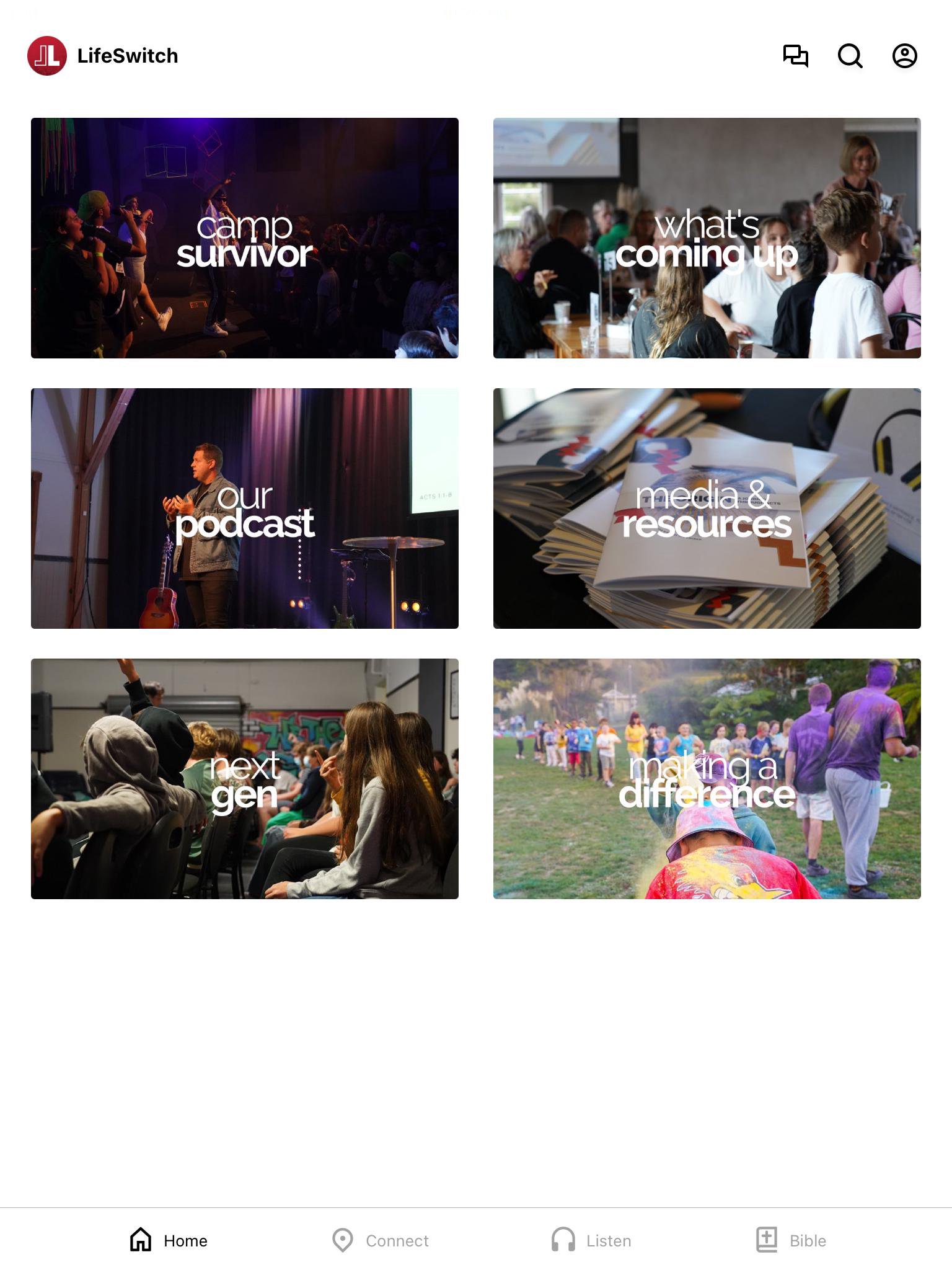 Welcome to the official LifeSwitch app. It'll become your go-to place for helpful info on what's coming up, free resources and more. Download now to stay connected with all that's happening at LifeSwitch. For more information about LifeSwitch, visit: www.lifeswitch.org.nz The LifeSwitch app was developed with the Subsplash App Platform. Copyright: App: © 2025 Subsplash, Content: © 2025 LifeSwitch