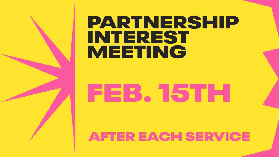 If you have been here longer than 6 months or who have attended a welcome to LIFE, join us for an interest meeting to become a Partner here at LIFE, on the 2nd floor.