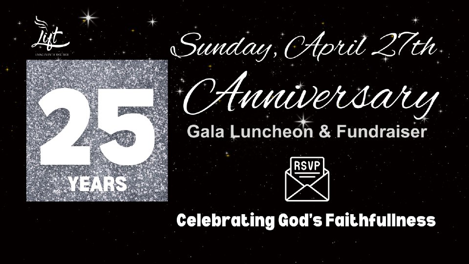 Lift International Church is celebrating its 25th Anniversary and we are inviting all past and current members, families and partners to celebrate together how far God has brought us!