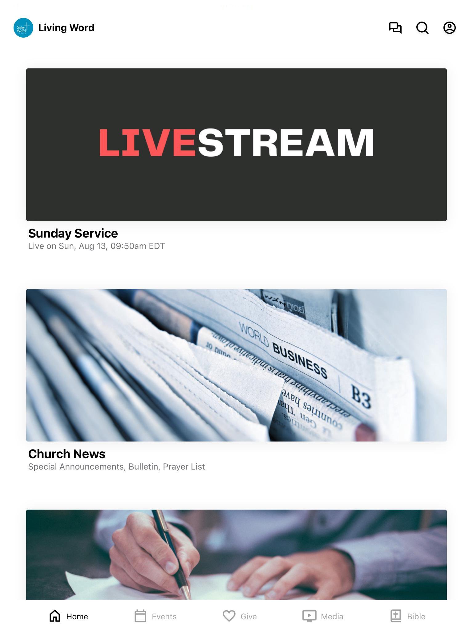 The official app for Living Word Church New Wilmington. Download our app today to stay up to date with our most recent media content of Sermons, Livestreams, etc. You can also stay informed and register for upcoming events, can access mobile app giving, and more.