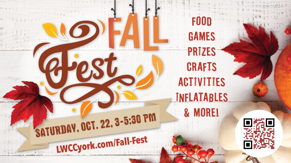 ALL ARE WELCOME! Join us for our first-ever Fall Fest, an event designed for families, kids, and teens. There will be food, games, crafts, fall activities, inflatables, and more. No registration required. This is a FREE event. Note: This is not a drop-off event. Children under the age of 10 must be accompanied by an adult.