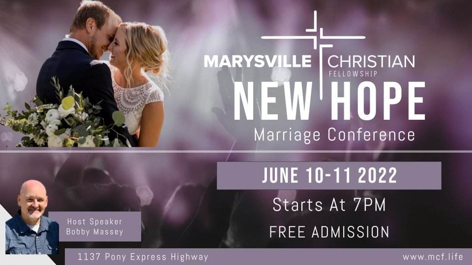 The New Hope Marriage Conference with Guest Host Pastor Bobby Massey is a FREE event hosted by Marysville Christian Fellowship. Whether you are married, engaged, or hope to be married one day, this conference is for you! Register today to reserve your spot.