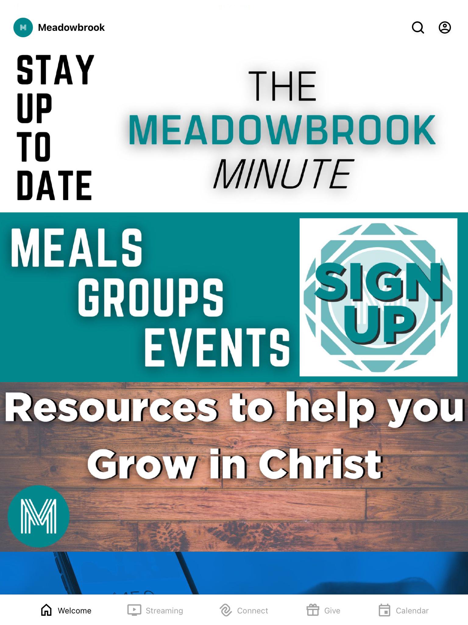 With the Meadowbrook app, you will be able to stay connected with the day-to-day life of our church. Everything here is to help in our goal of leading people to become fully committed followers of Jesus Christ. - Stream our Sunday worship services - Watch or listen to past messages - Stay up to date with events - Sign up for events - Give or donate online - Share your favorite messages via Twitter, Facebook, or email - Download messages for offline listening - Access Meadowbrook and other resourceful podcasts and tools