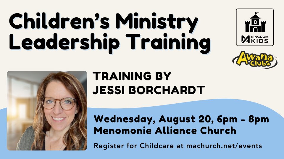 Jessi Borchardt will be coming to give training and encouragement to people who work with kids inside the church building (Awana, Sunday Mornings, events, etc). This is a great opportunity to be informed about today’s generation and encouraged about how we can be praying and working with the kiddos and families in our midst. This training is required for those serving in Children's Ministry at Menomonie Alliance Church.