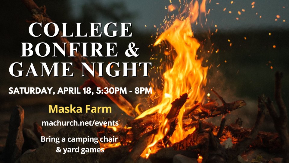 College students, join the Maskas at their farm for a bonfire and game night. Bring a camping chair and yard games if you have them. Contact DJ with questions.