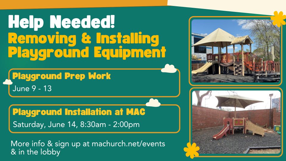 We have purchased gently used playground equipment from UW-Stout and are moving it to its new home at the Menomonie Alliance Church playground! June 14th will be devoted to reassembly of the equipment. We hope to have the posts set beforehand so all the work will be putting on the stairs, climbers, platforms, railings, etc. If time allows we would love to put down the landscaping fabric and have the pea gravel delivered to lay down. *No specific skills required besides willingness to help!