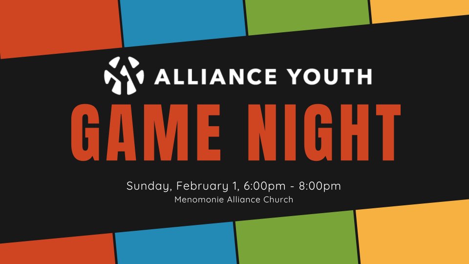 We will have a game night Sunday, February 1st from 6:00-8:00pm at the church for any youth available to come. Come and bring your friends!