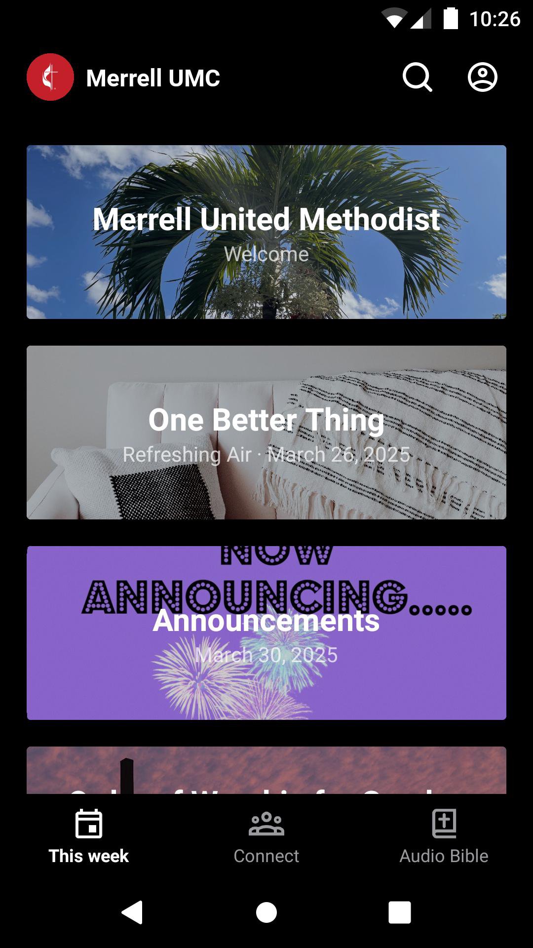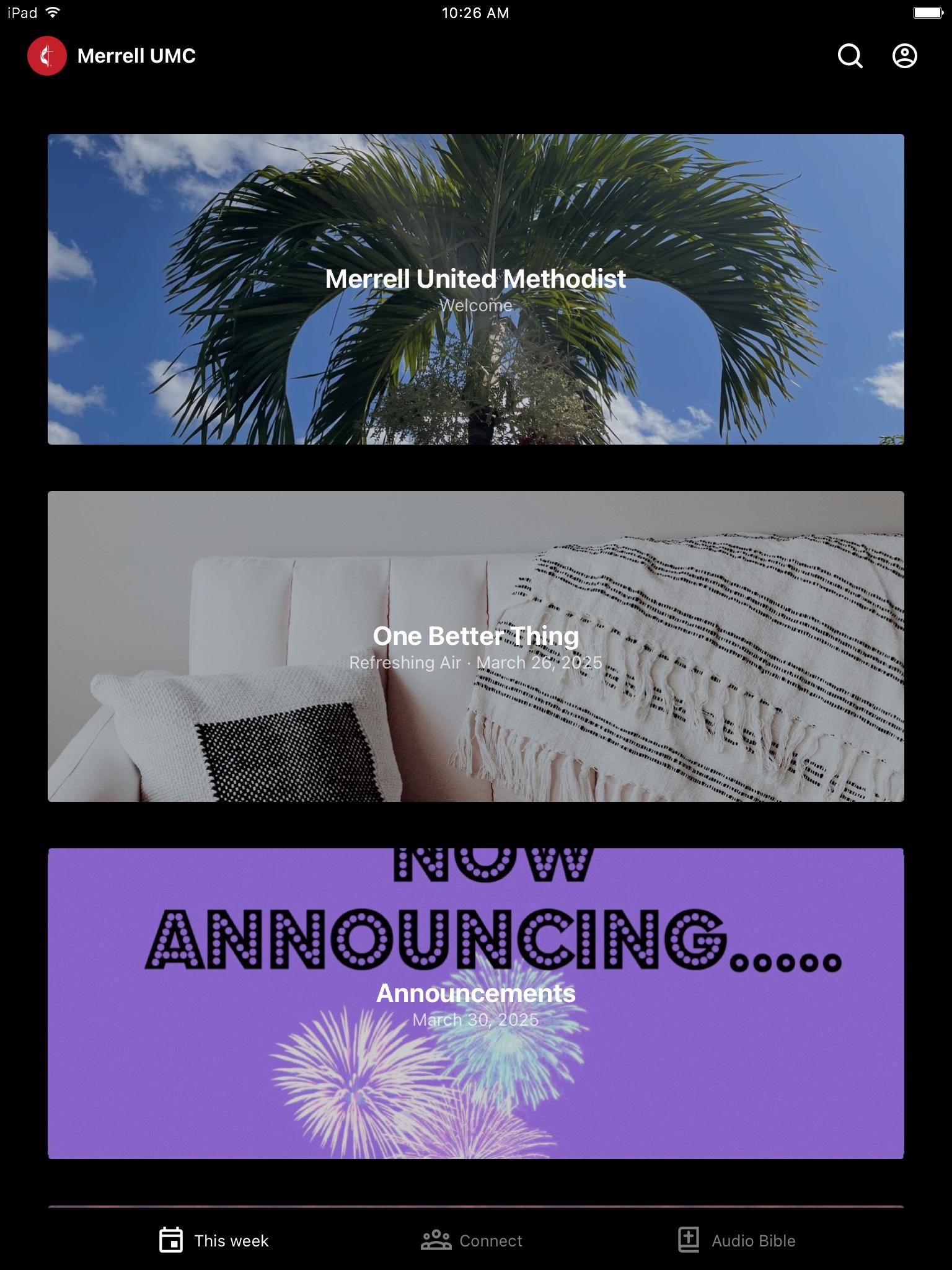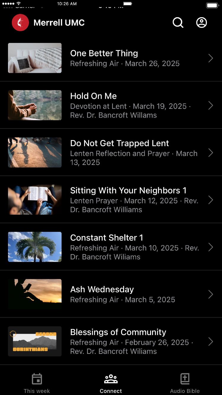 This app will help you stay connected with the day-to-day life of Merrell UMC. With this app you can: watch or listen to past messages; stay up to date with push notifications; share your favorite messages via Twitter, Facebook, or email; and download messages for offline listening.
