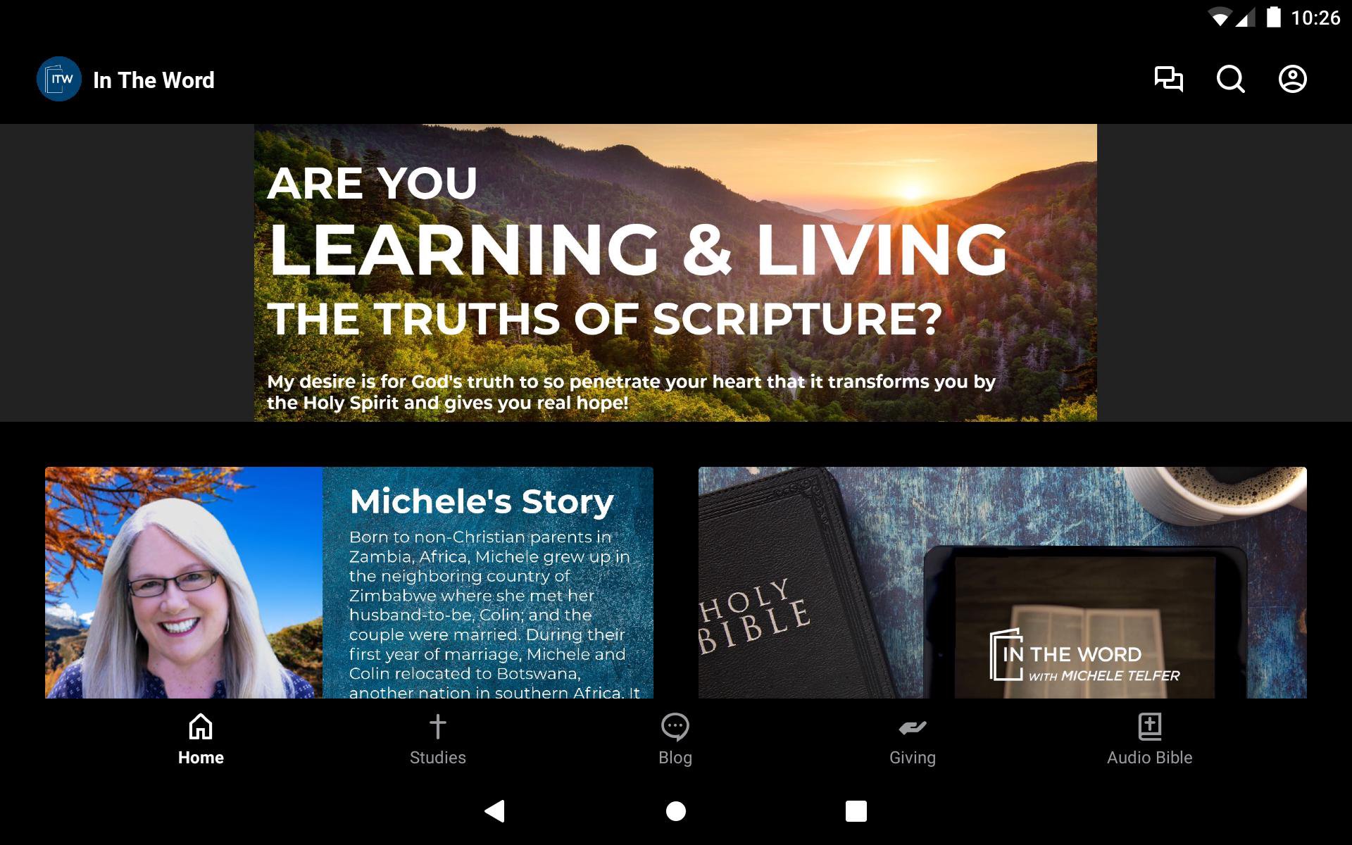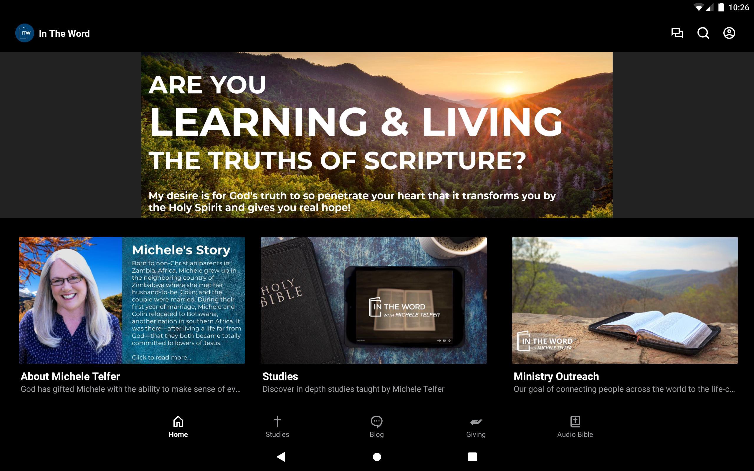 In this app you can donate through Subsplash Giving, listen/watch our most recent studies, contact us, learn more about Michele and the ministry outreach, read the blog, and subscribe to our newsletter!