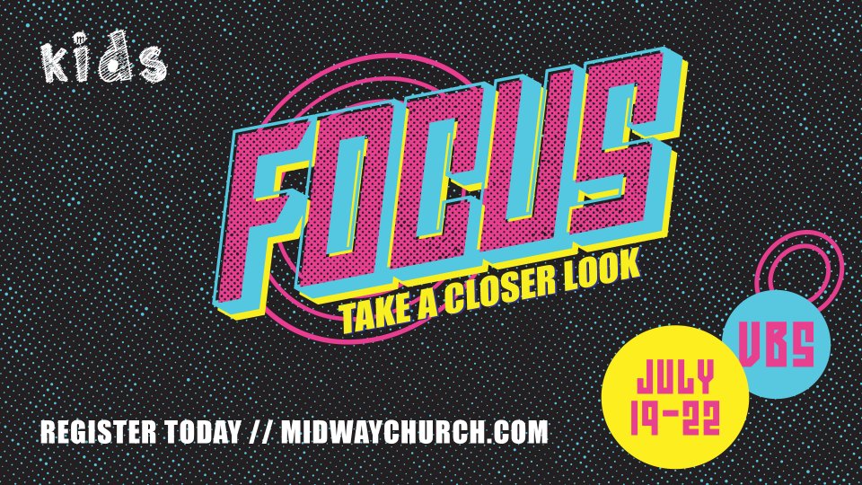 Is your family ready for an amazing week? VBS is here! Midway Kids is so excited to announce an amazing week focused on taking a closer look into the Bible, faith, and who Jesus is to every one of us! This will be 4 exciting days that your child is encouraged to come be apart of, and we hope to see each of them there! We cannot wait to enjoy this time with them! Dates and Times: July 19-22 VBS Week