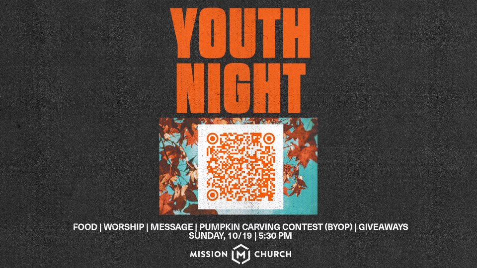 High schoolers don’t miss out on an epic night of dinner, worship, message, games, and giveaways! We're doing a PUMPKIN CARVING CONTEST. Bring your own pumpkin.