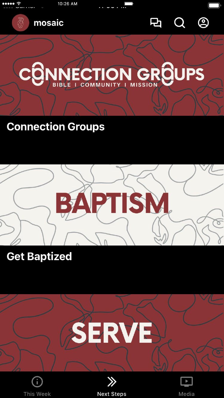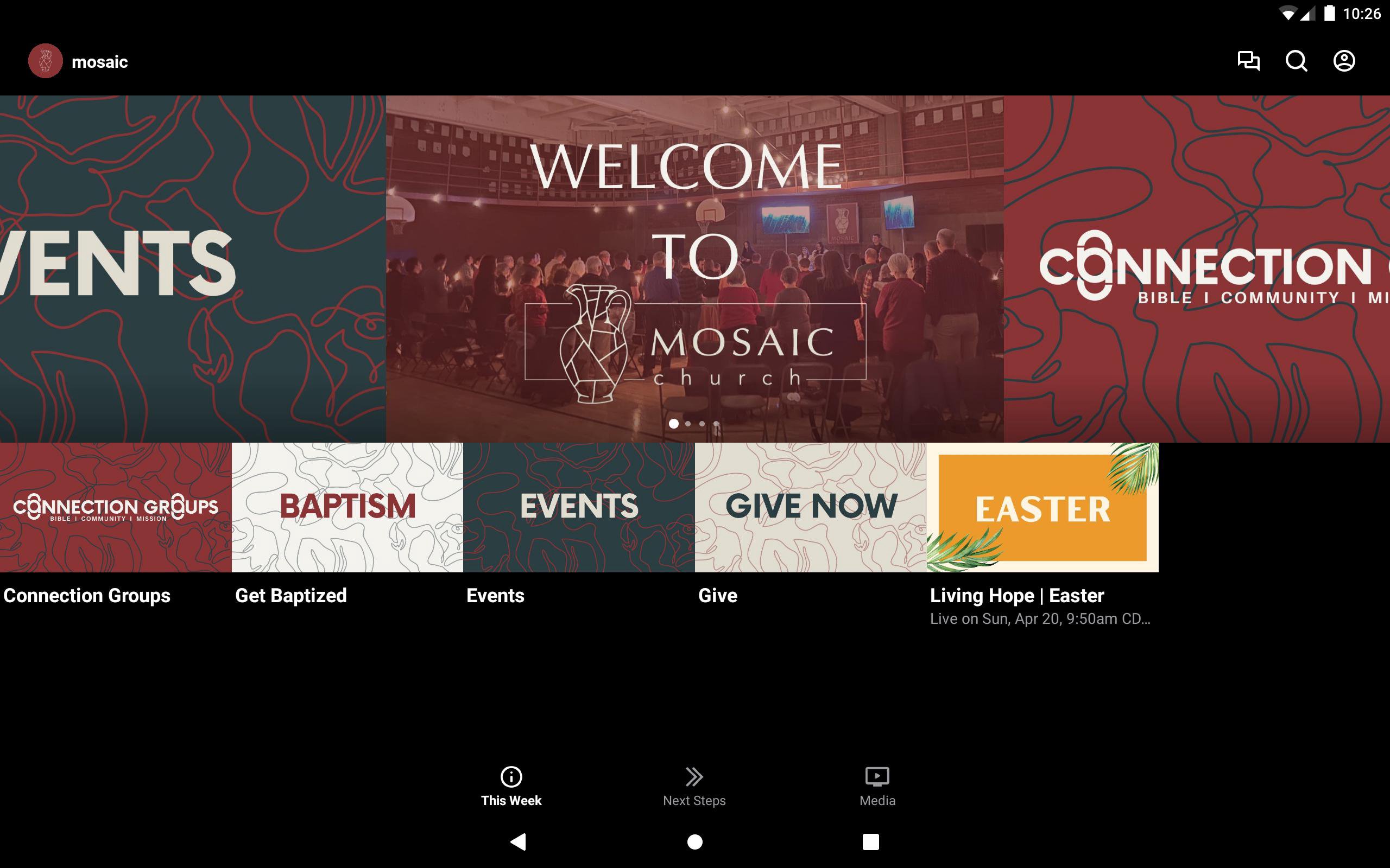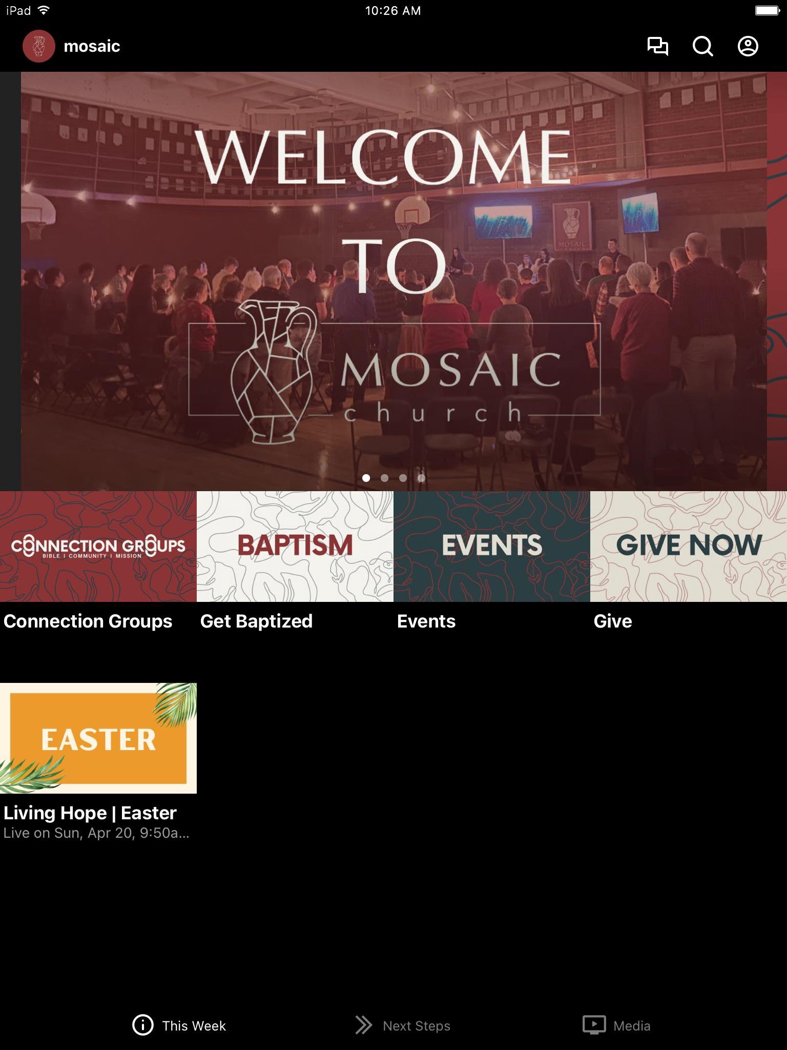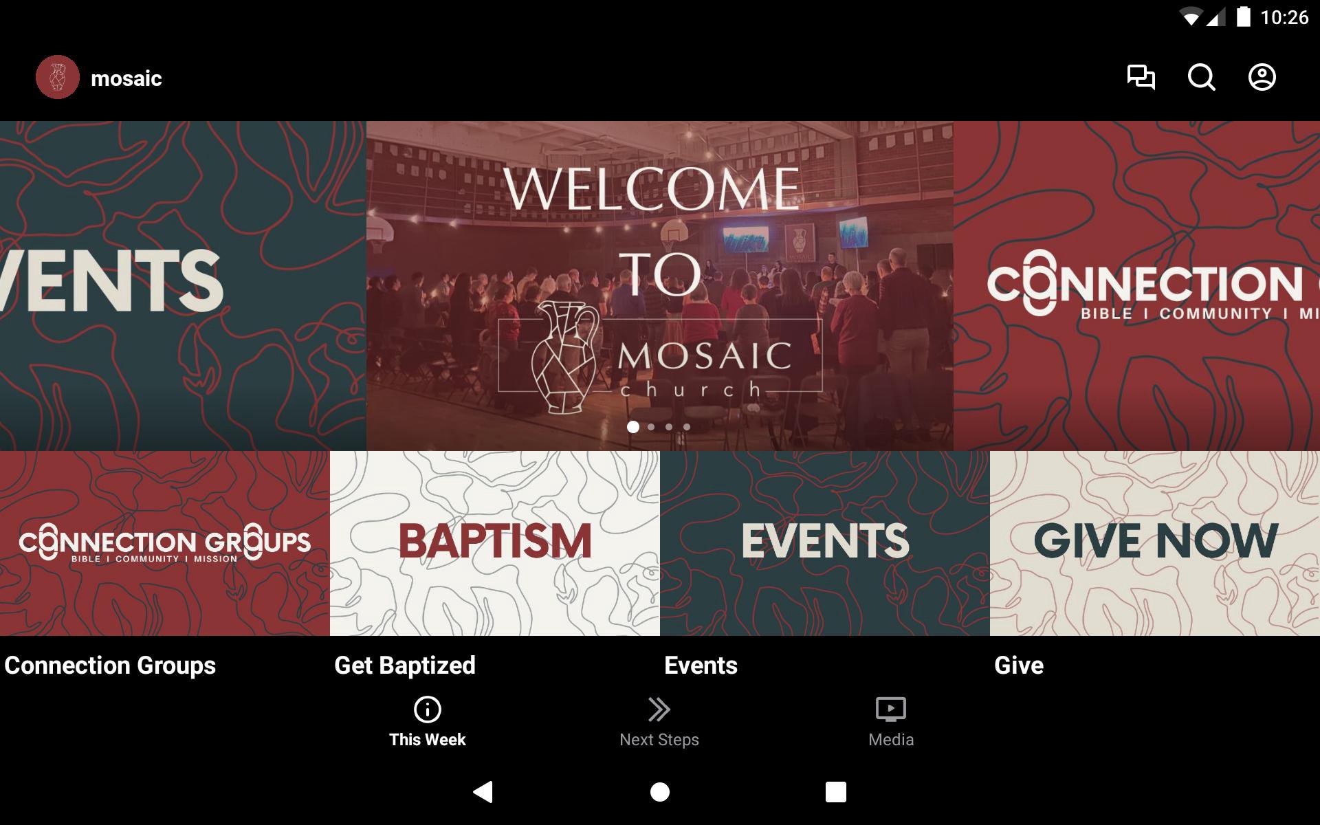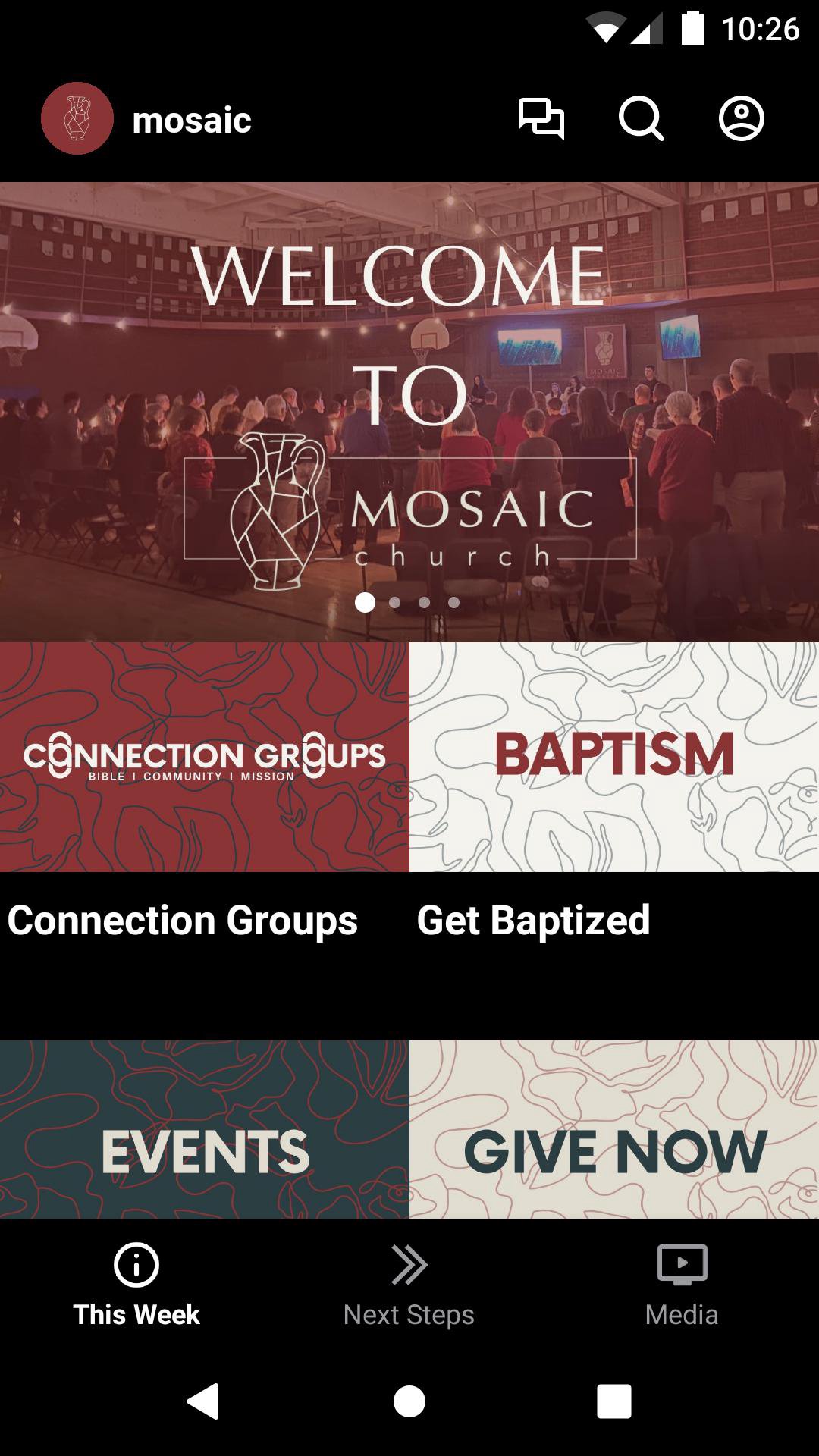 Connect and engage with our community through the Mosaic Church app! Download our app to browse media content, give conveniently, stay up to date, and learn more about us.
