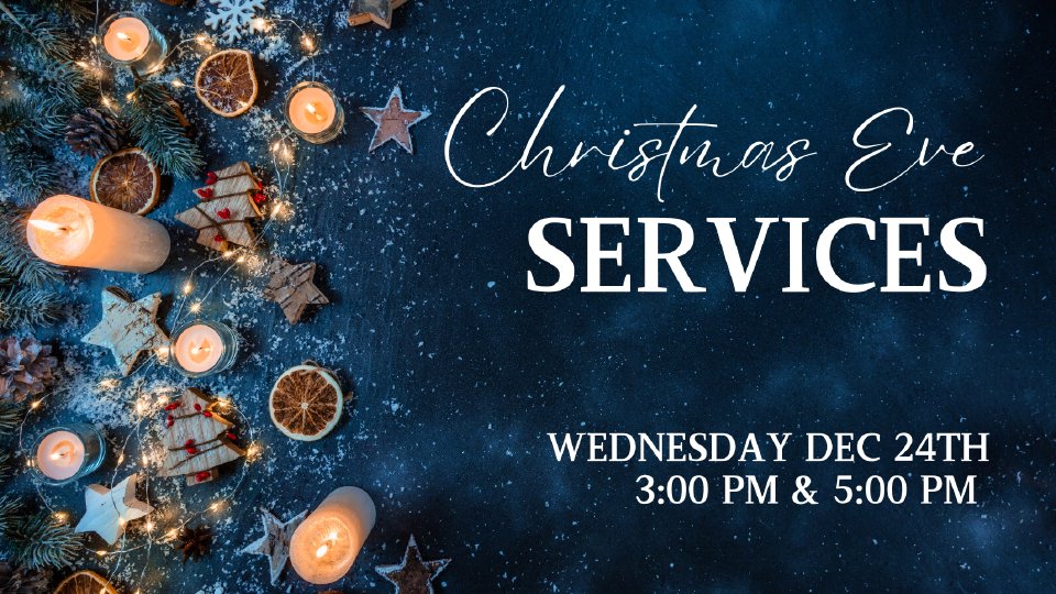 Please join us on Christmas Eve at 3:00 or 5:00 PM as we celebrate the true reason for this season — Jesus our Lord! Take a moment to slow down, gather together, and focus your heart on the Savior who came to bring hope and peace to the world. Invite your friends and family!