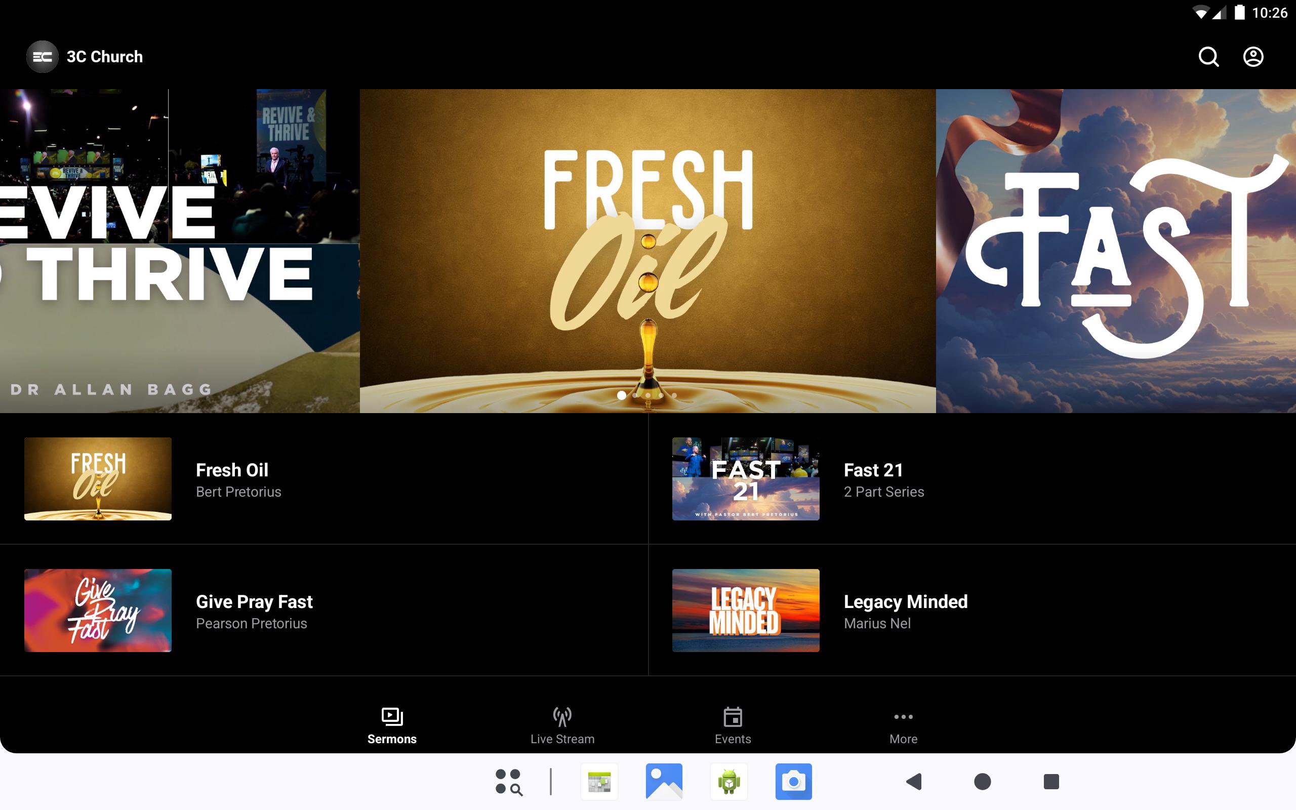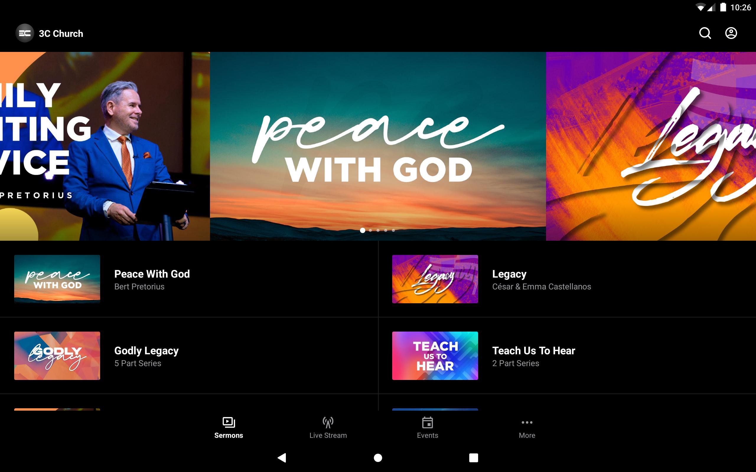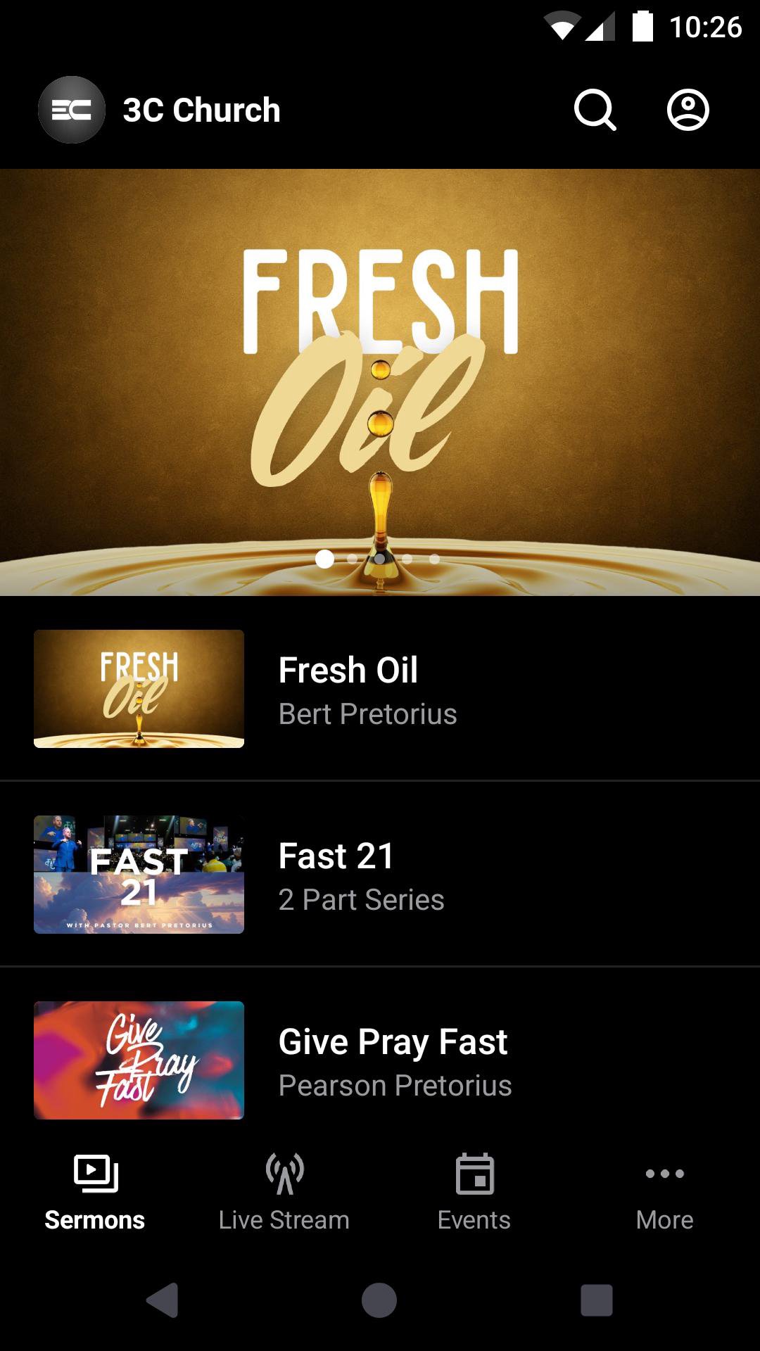 Stay connected to Pastors Bert and Charné Pretorius and all things 3C with this user friendly app. With the latest sermons, articles and live streaming readily available it could not be easier to tap into the vibrant 3C community. Sunday services are rebroadcast throughout the week to revisit or receive the inspiration for the week from the heart of our Senior Pastors. Engage the prayer team with your prayer requests, make use of the online giving facility or just browse the testimonies for some fresh fire. The 3C Church App was created with The Church App by Subsplash