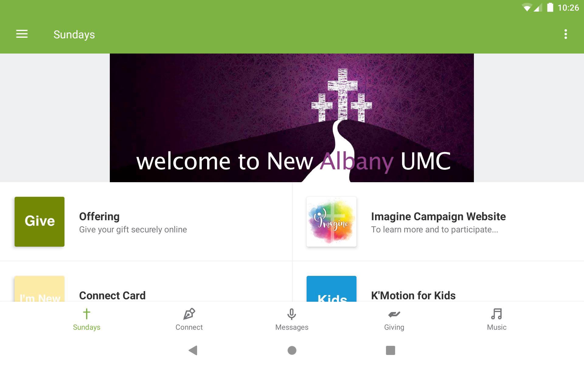 Welcome to the New Albany Methodist mobile application. Stay up to date on what's going on at church, listen again to your favorite sermon, check out what's happening and get a heads up on your favorite ministries. Feel free to download and to share any materials here with your friends via Twitter, Facebook or email. For more information about New Albany Methodist please visit www.newalbanyumc.com. The New Albany Methodist App was created with the Subsplash App Platform.