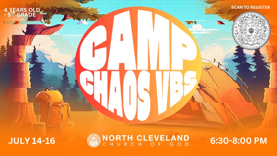 Save the date for Vacation Bible School coming to North Cleveland July 14-16 from 6:30-8:00PM each night. The theme is Camp Chaos and kids 4 years old through 5th grade are invited to attend.