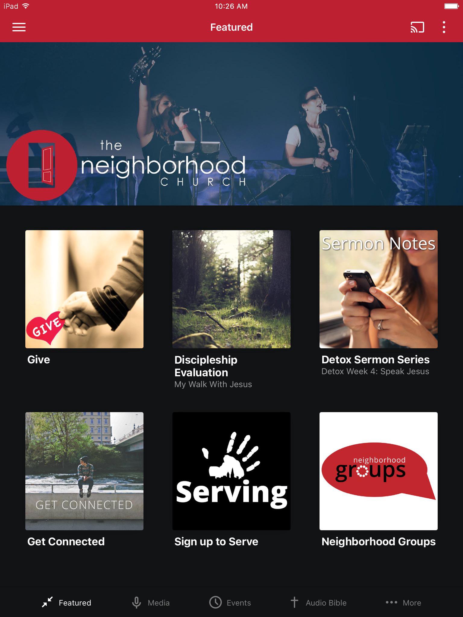The Neighborhood Church App features powerful content from Pastor David Bagwell, who leads Neighborhood Church in Easley, South Carolina. The Neighborhood Church exists to engage people far from from God, equip Christ Followers to do Ministry, & empower Christ Followers to make Disciples who make Disciples. To help believers strengthen their faith, this app provides access to life-changing audio sermons, engaging blog entries, and relevant information about the Neighborhood Church. Additionally you can share content with your friends via Twitter, Facebook and email. For more information on the Neighborhood Church, please visit: www.neighborhoodchurch.cc The Neighborhood Church App was developed with the Subsplash App Platform.