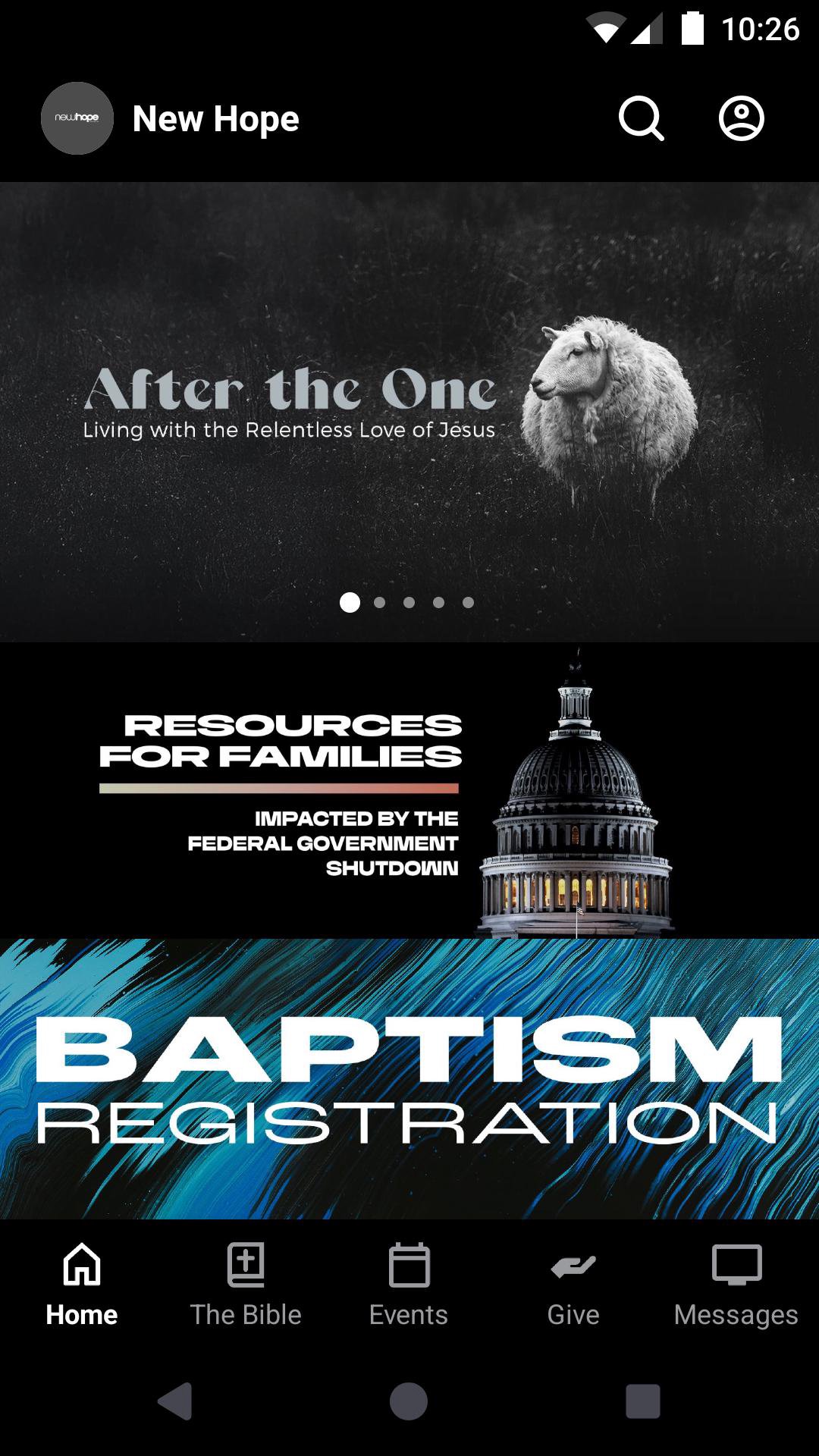 This is the official mobile app for New Hope Church in Lorton, Virginia. It’s designed to help you connect with the mission of our church. You’ll find resources, tools, and ways to stay engaged with all that’s happening at New Hope. Get quick access to messages, videos, giving options, and more. For more information, please visit us online at newhope.org.