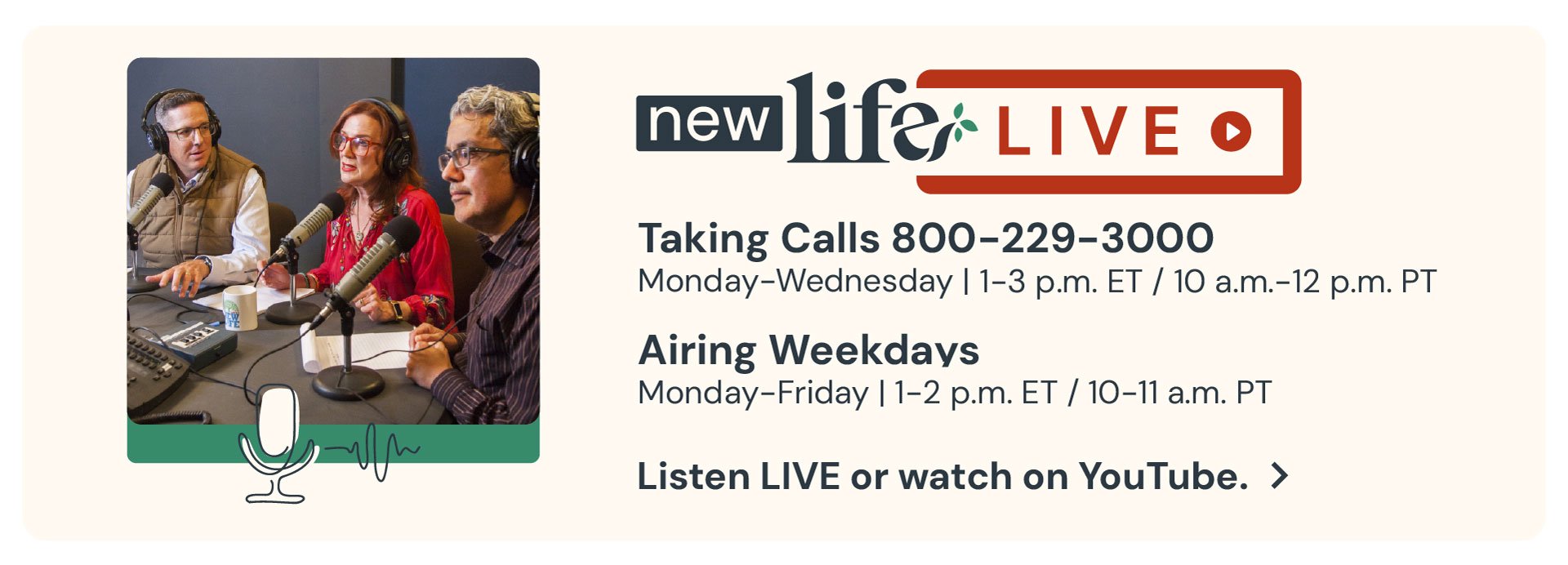Listen to recent episodes of New Life LIVE